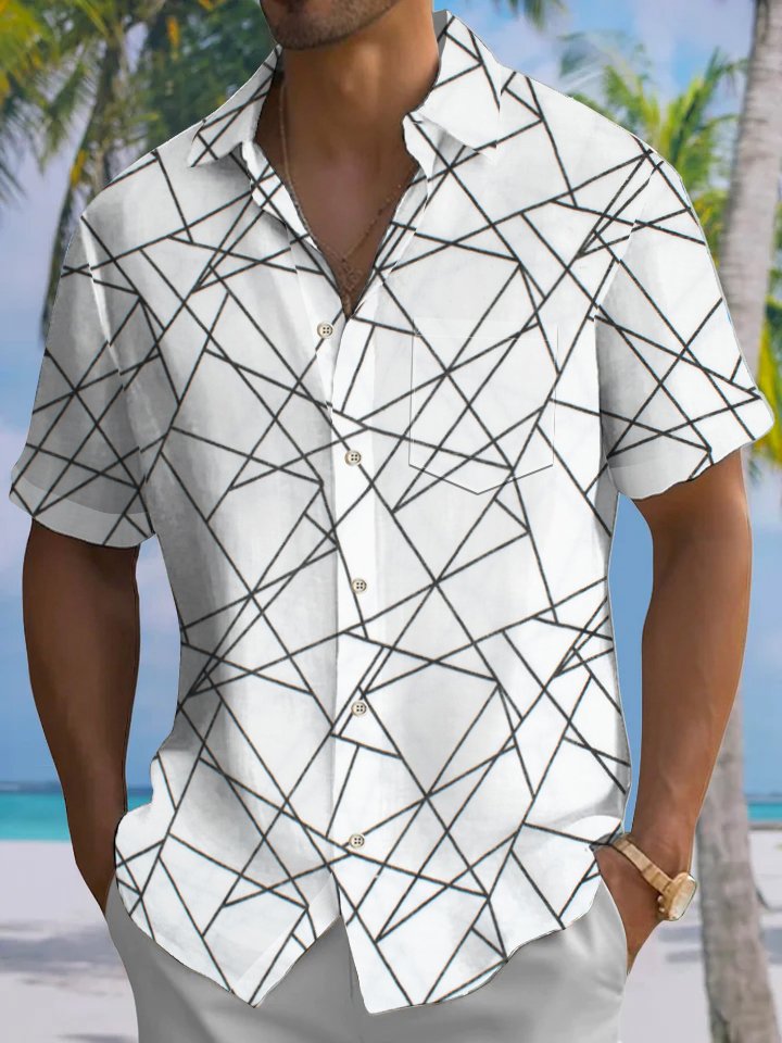 Alohadaddy® Casual Geometric Art Print Chest Pocket Mens Short Sleeve Shirt Big & Tall