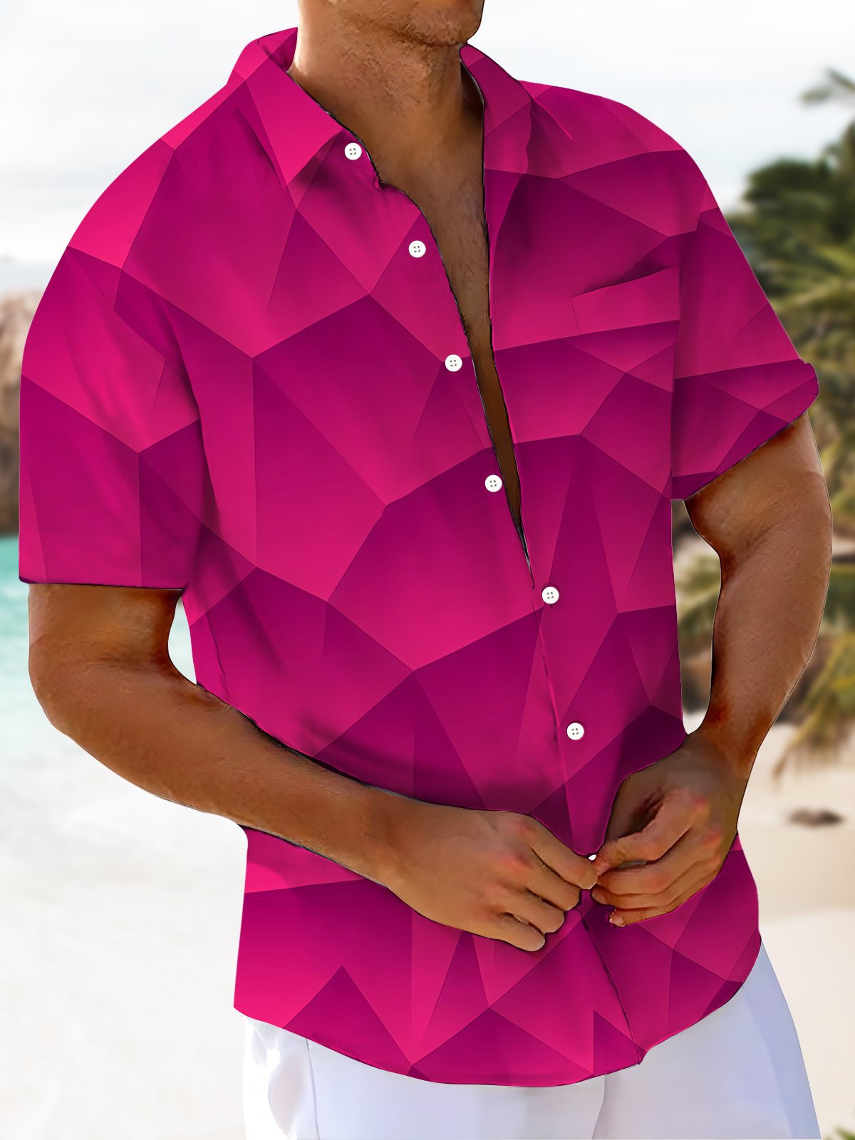 Alohadaddy® Casual Geometric Art Print Chest Pocket Men's Short Sleeve Shirt Big & Tall