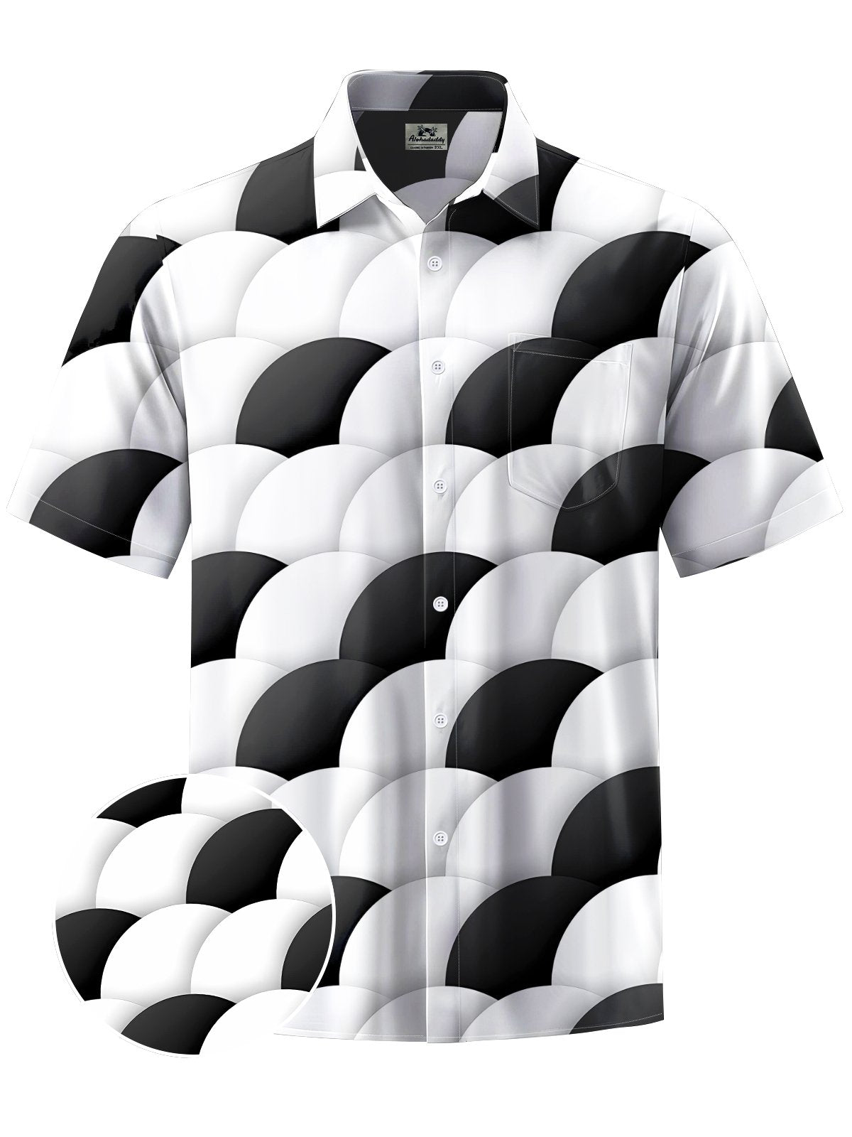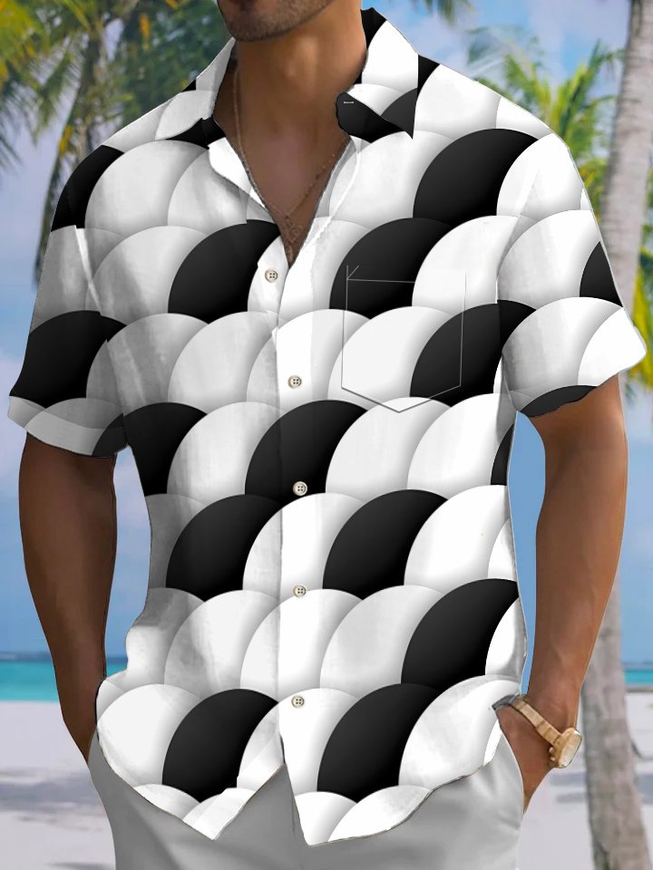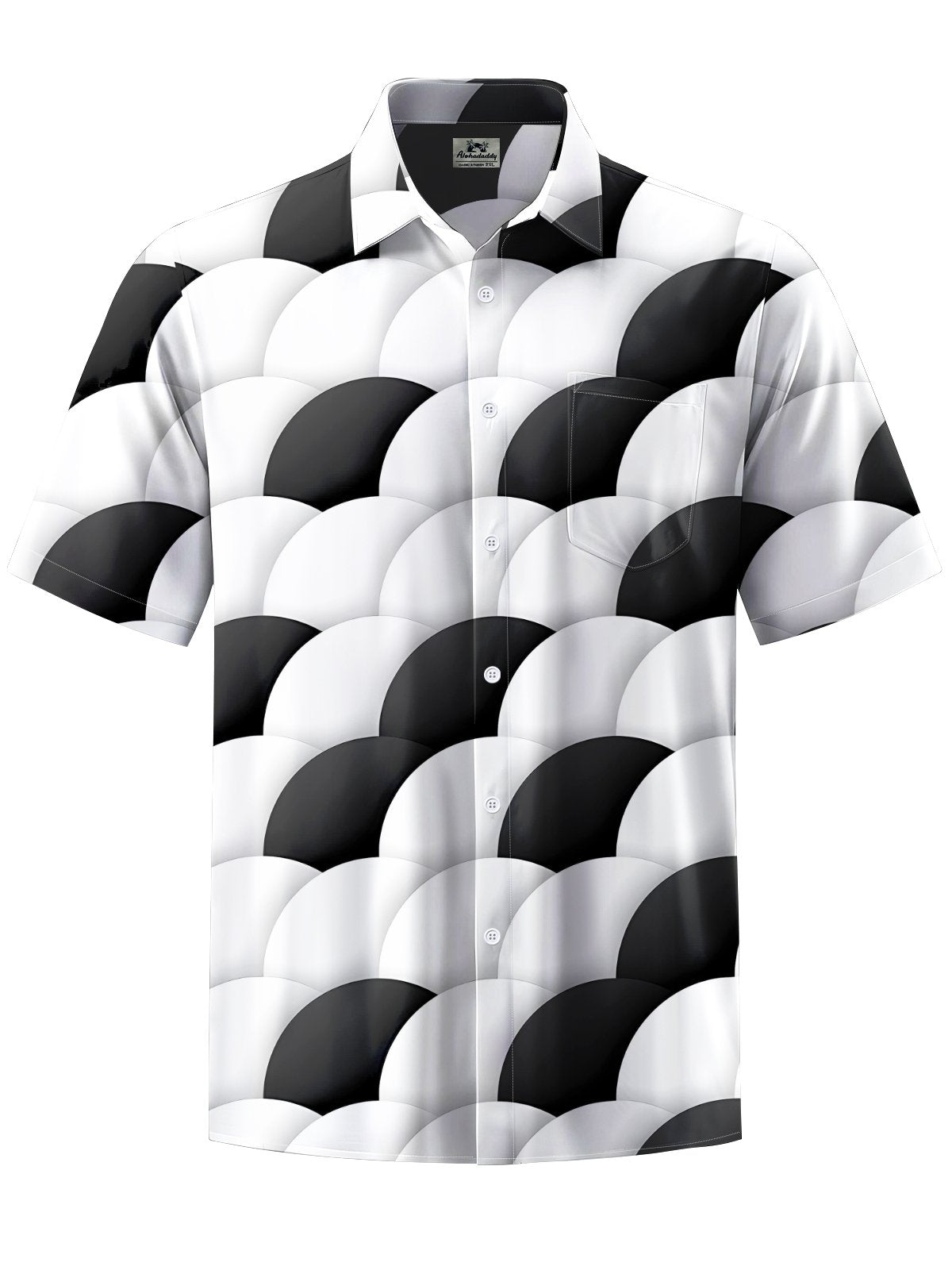Alohadaddy® Casual Geometric Art Print Chest Pocket Men's Short Sleeve Shirt Big & Tall