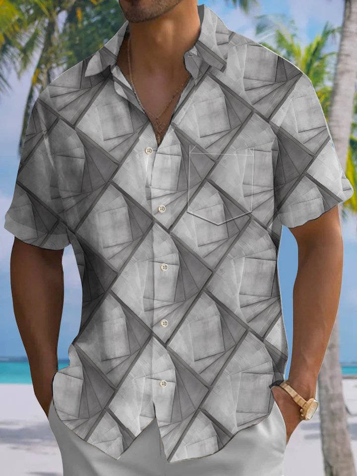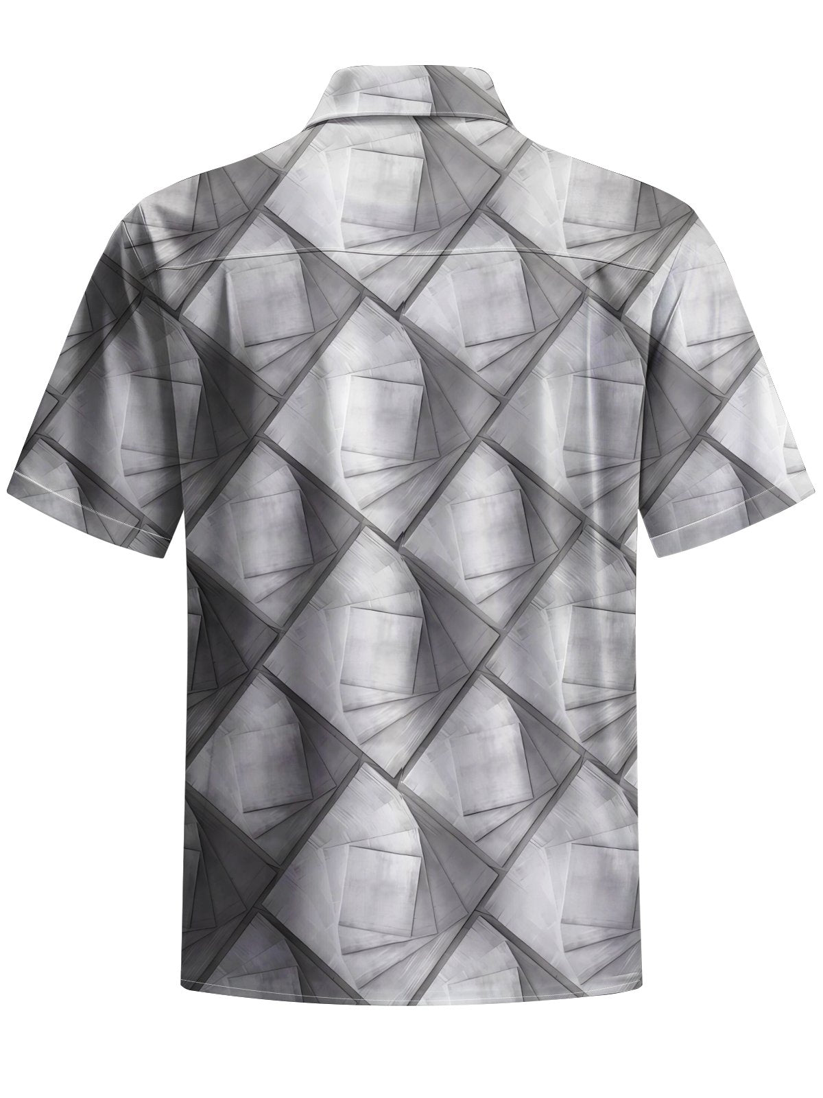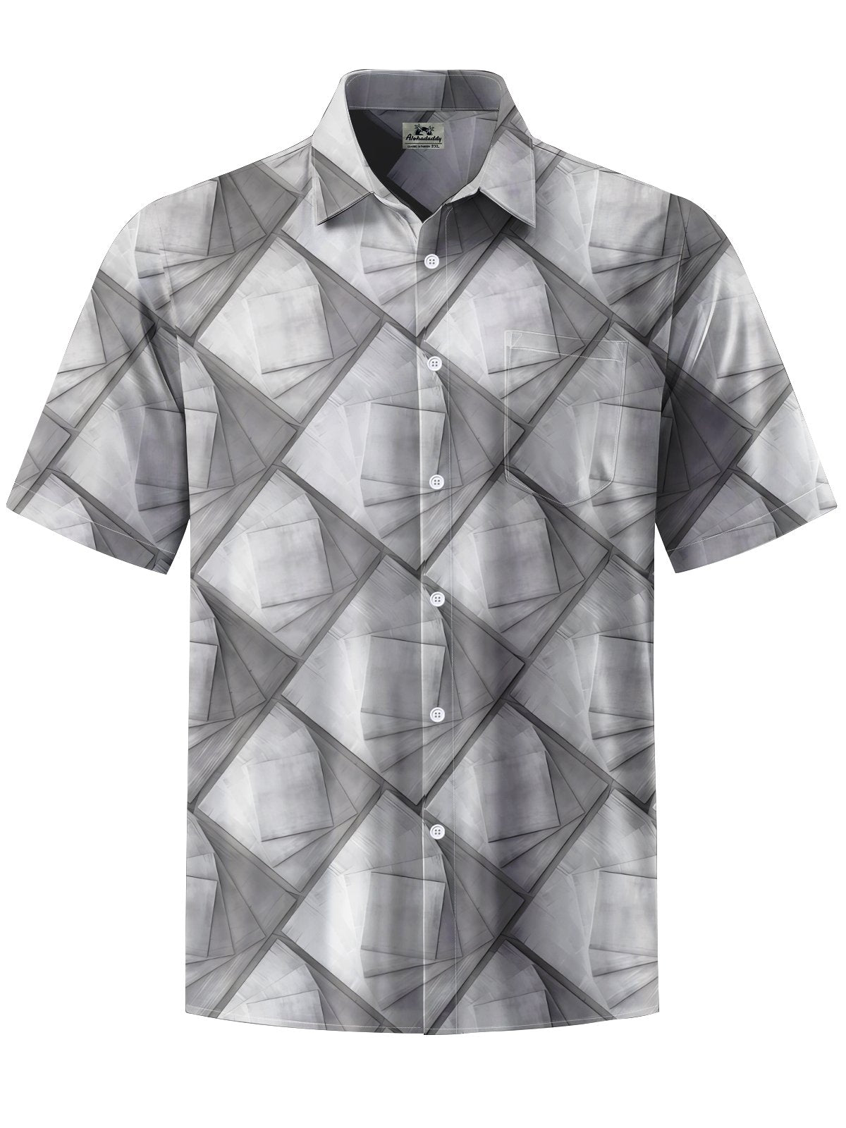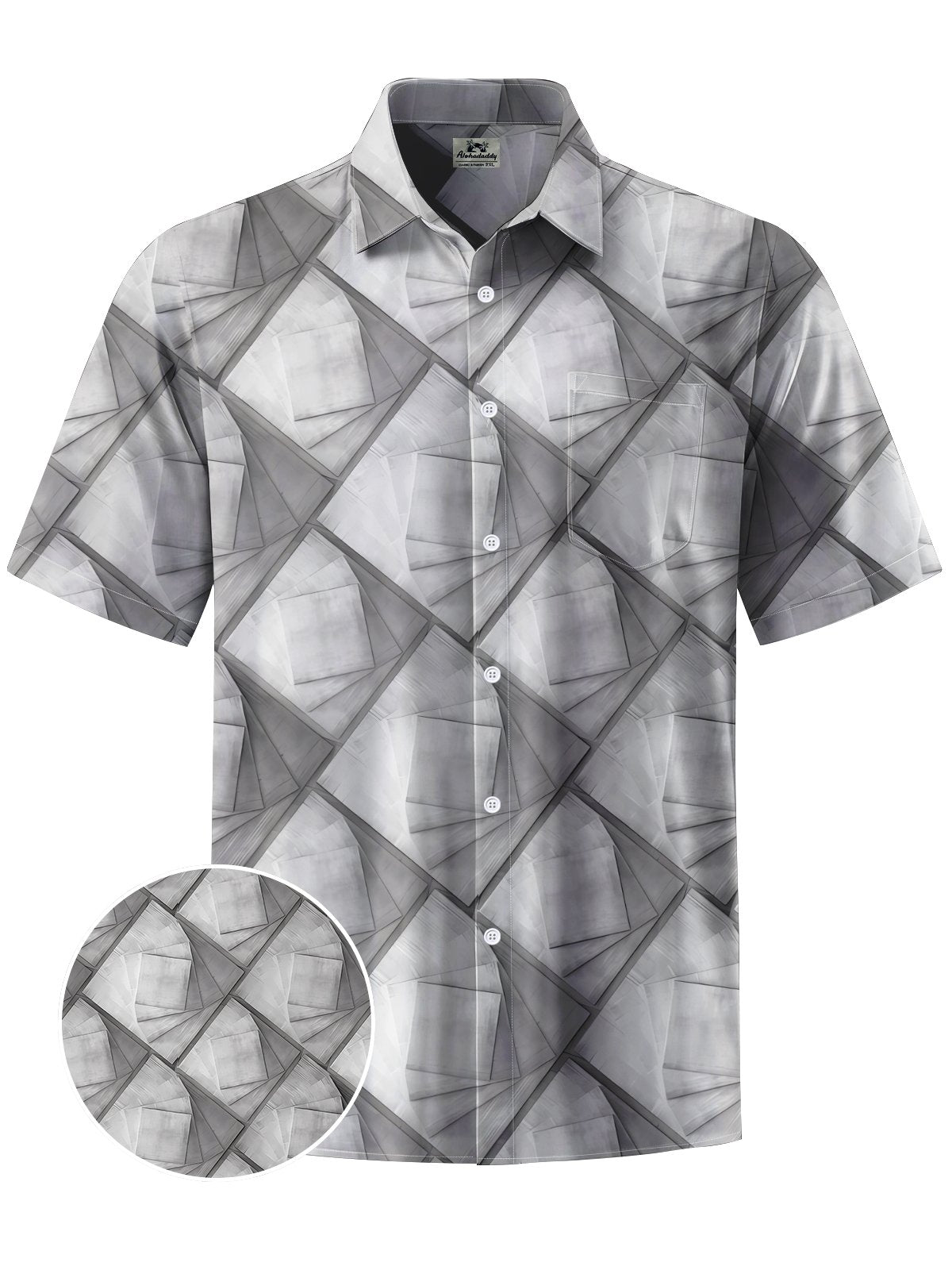Alohadaddy® Casual Geometric Art Print Chest Pocket Moisture Wicking Men's Short Sleeve Shirt Big & Tall