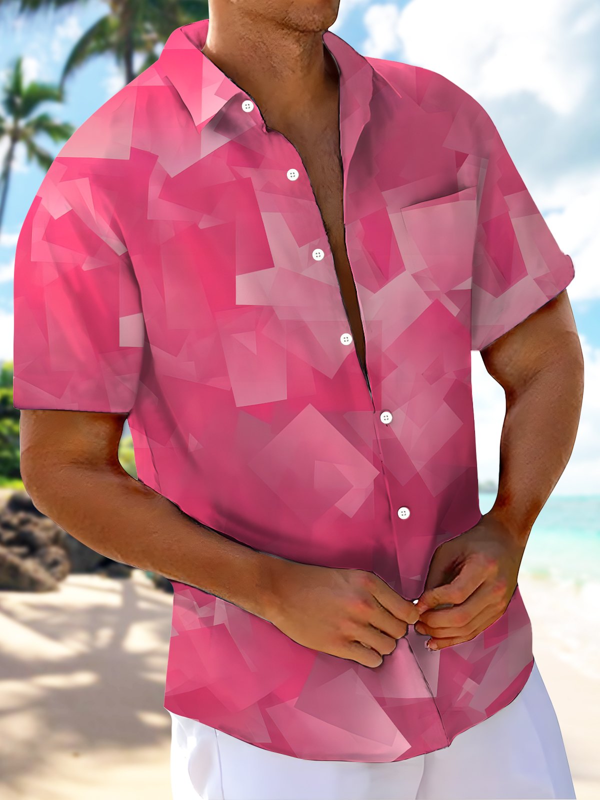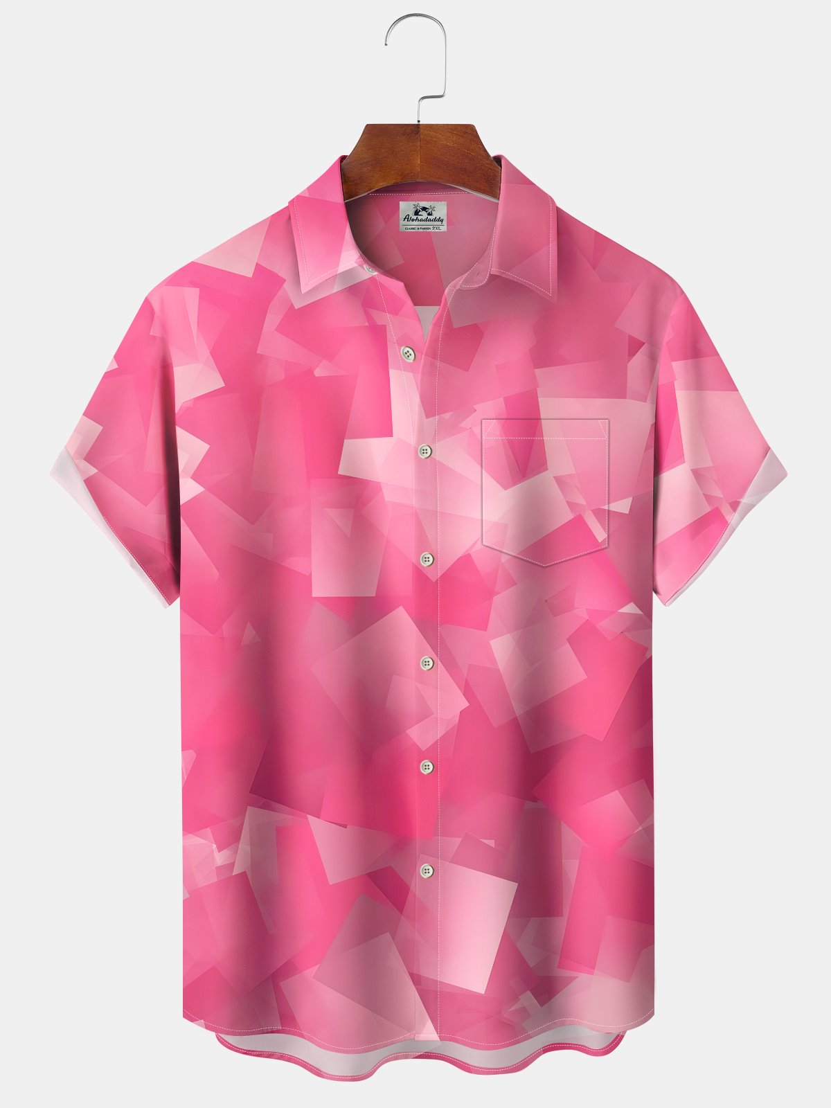 Alohadaddy® Casual Geometric Art Print Moisture Wicking Chest Pocket Stretch Oversized Hawaiian Shirt