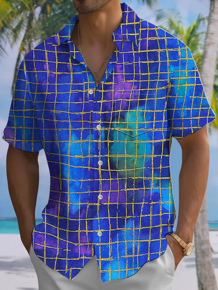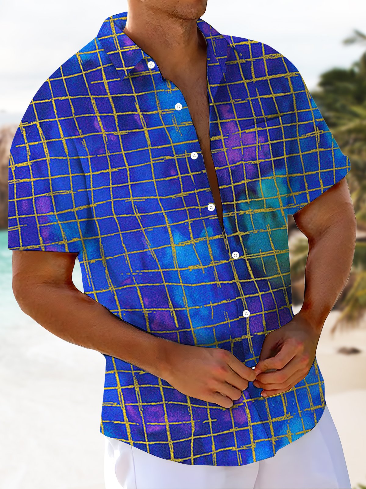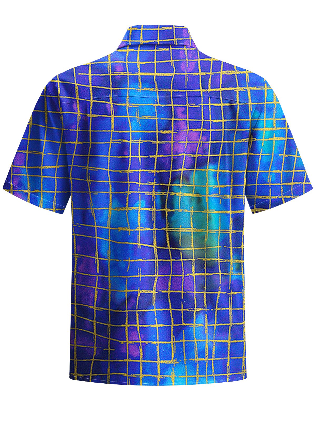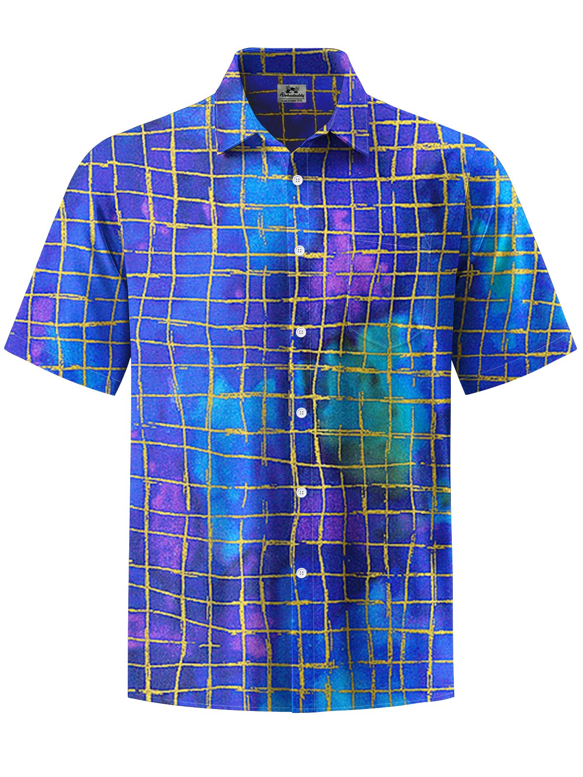 Alohadaddy® Casual Geometric Plaid Art Print Moisture Wicking Men's Short Sleeve Shirt Big & Tall