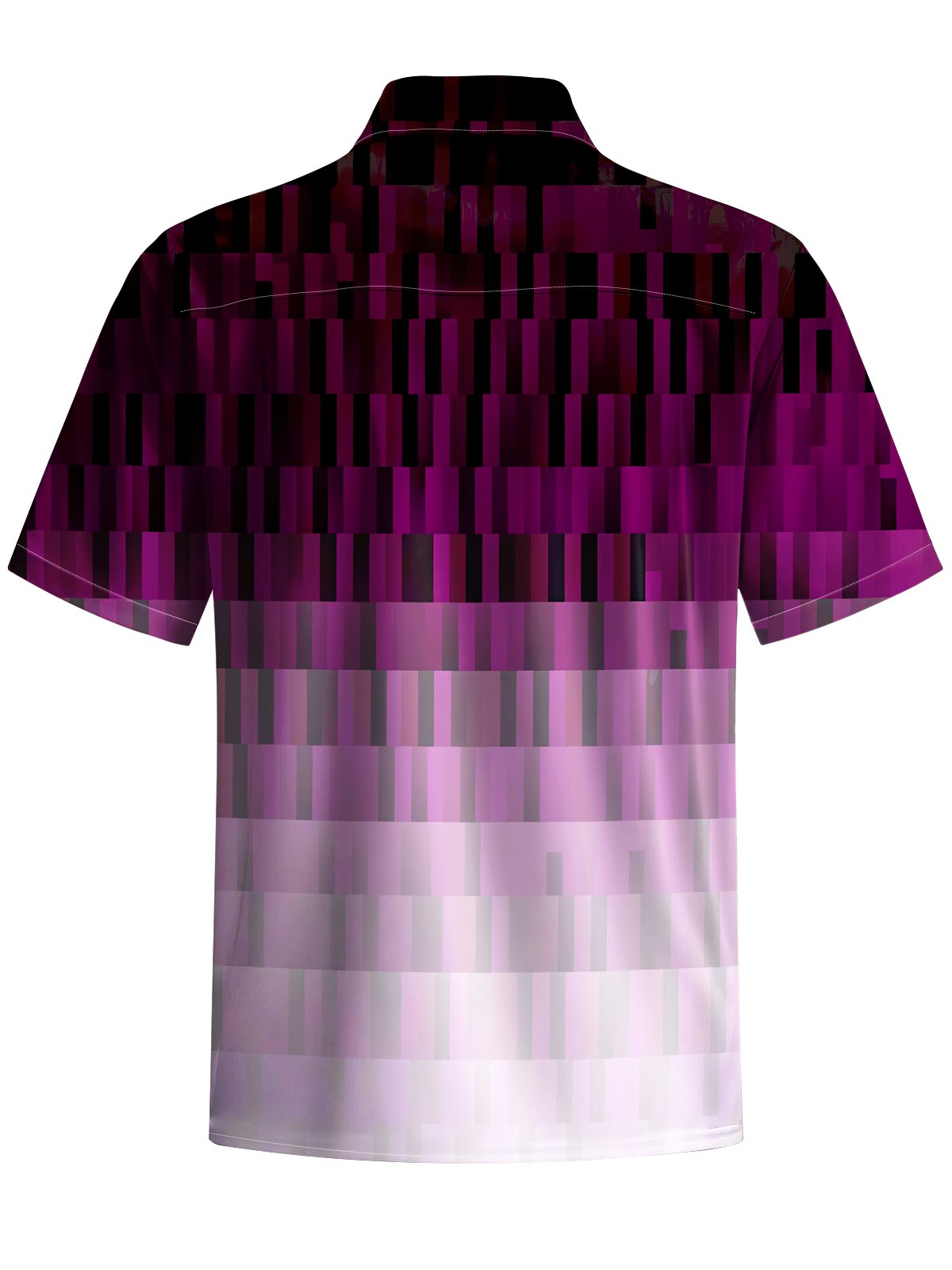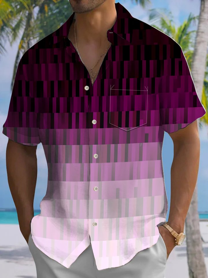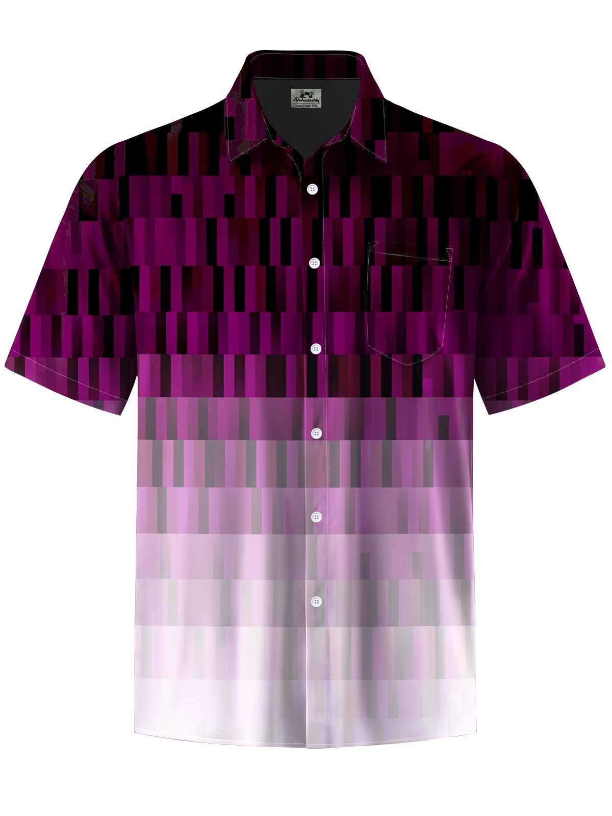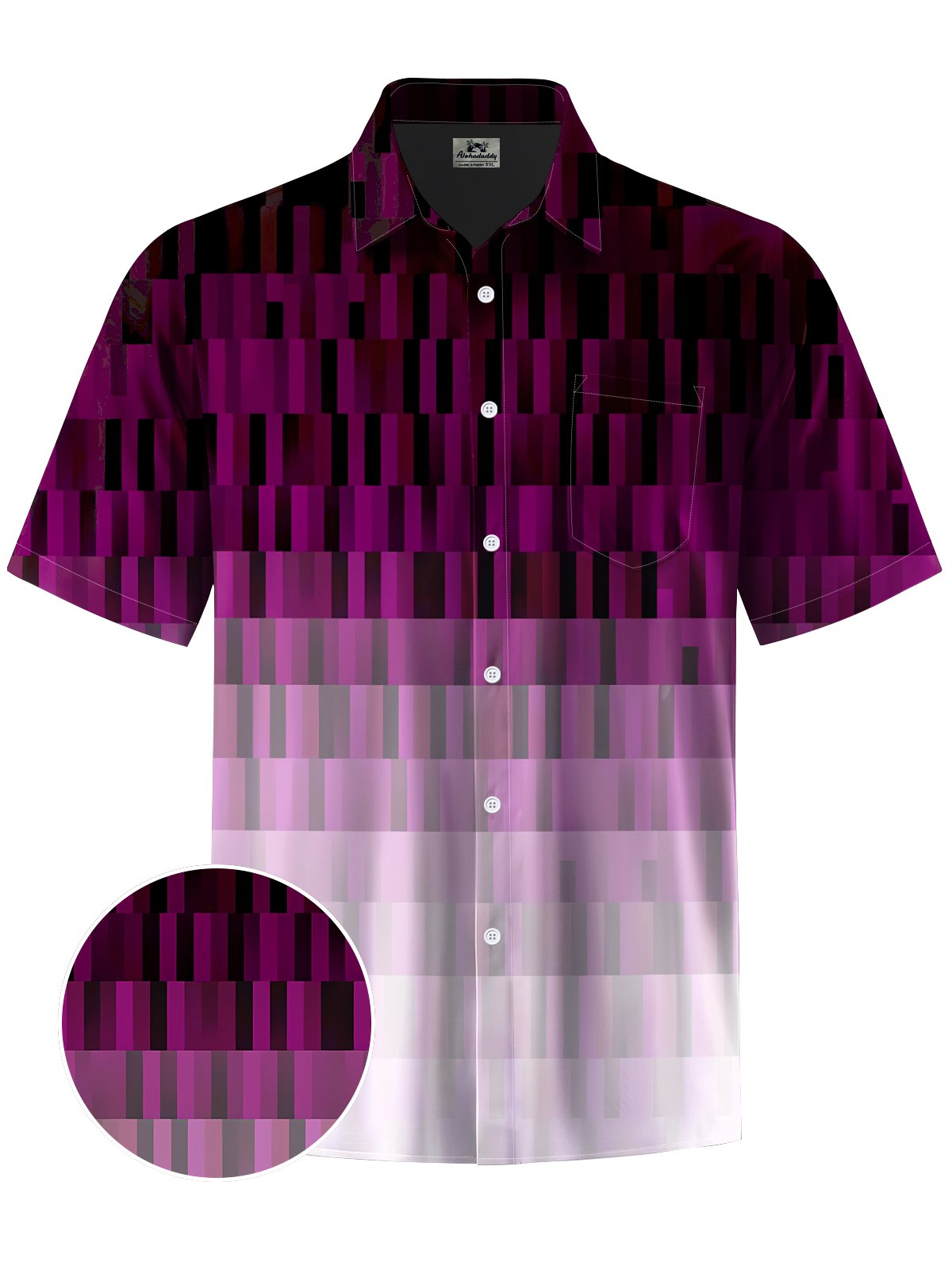 Alohadaddy® Casual Gradient Geometric Art Print Moisture Wicking Chest Pocket Men's Short Sleeve Shirt Big & Tall