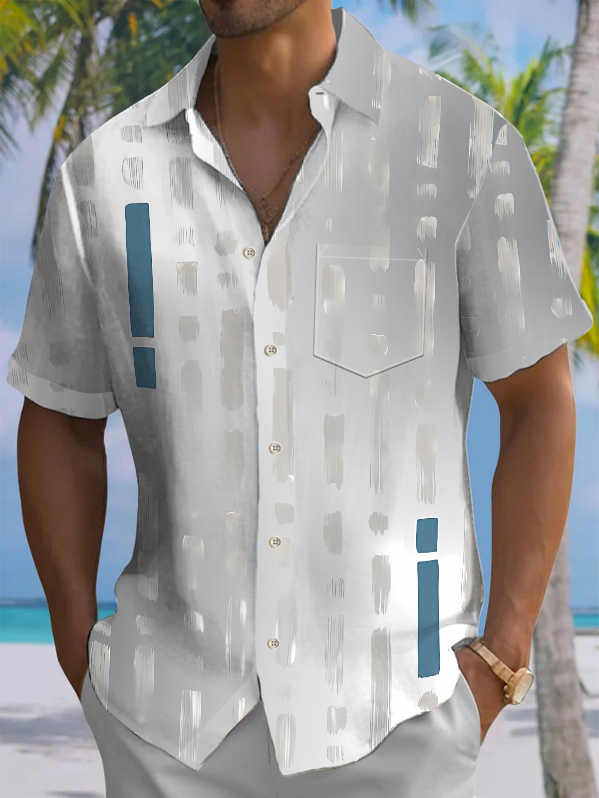 Alohadaddy® Casual Stripe Striped Art Print Chest Pocket Mens Short Sleeve Shirt Big & Tall