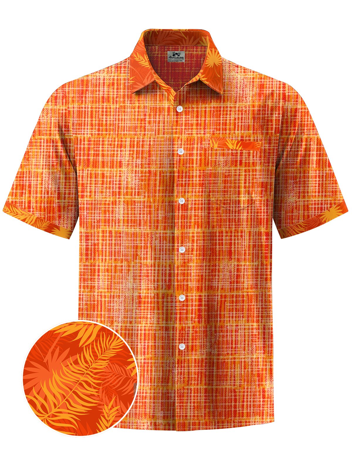 Alohadaddy® Casual Stripes Leaves Contrast Art Print Chest Pocket Men's Short Sleeve Shirt Big & Tall