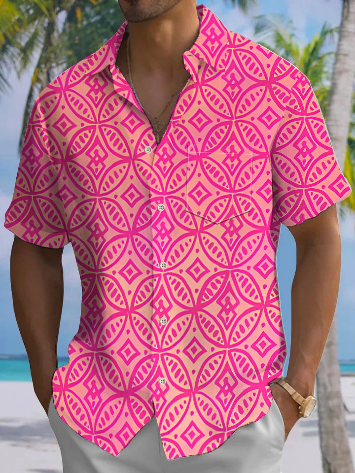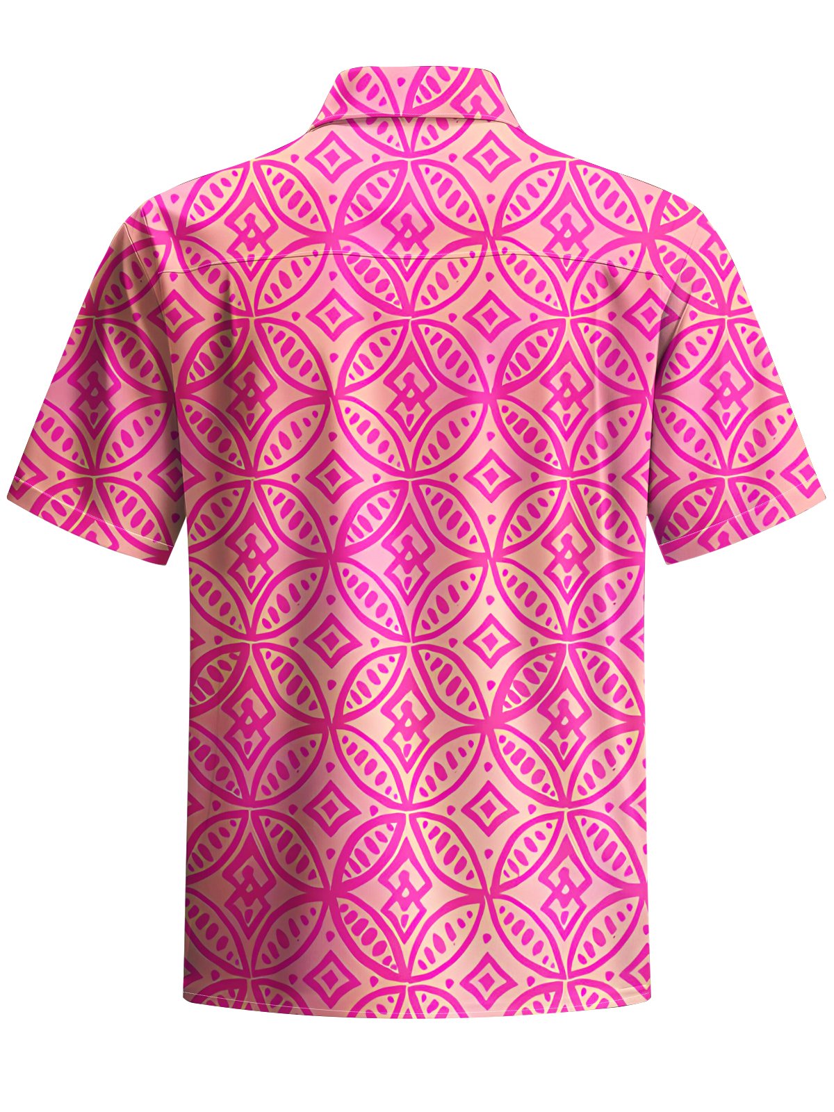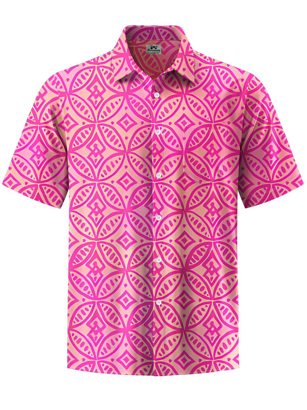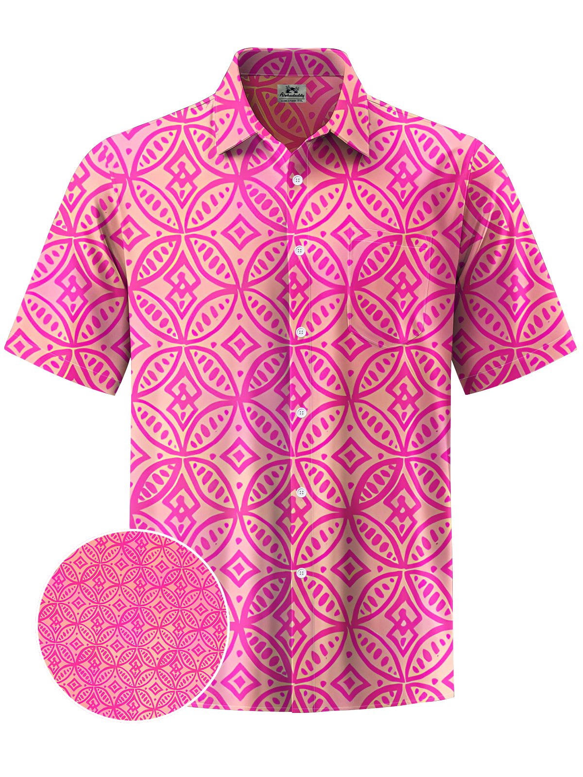 Alohadaddy® Hawaiian Geometric Art Print Moisture Wicking Men's Short Sleeve Shirt Big & Tall
