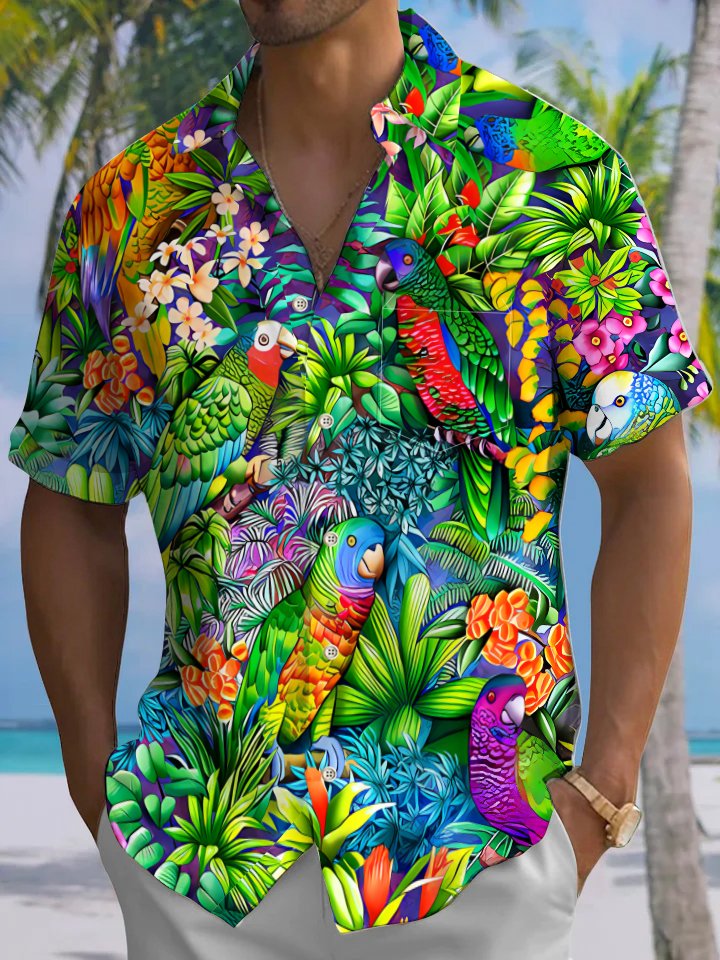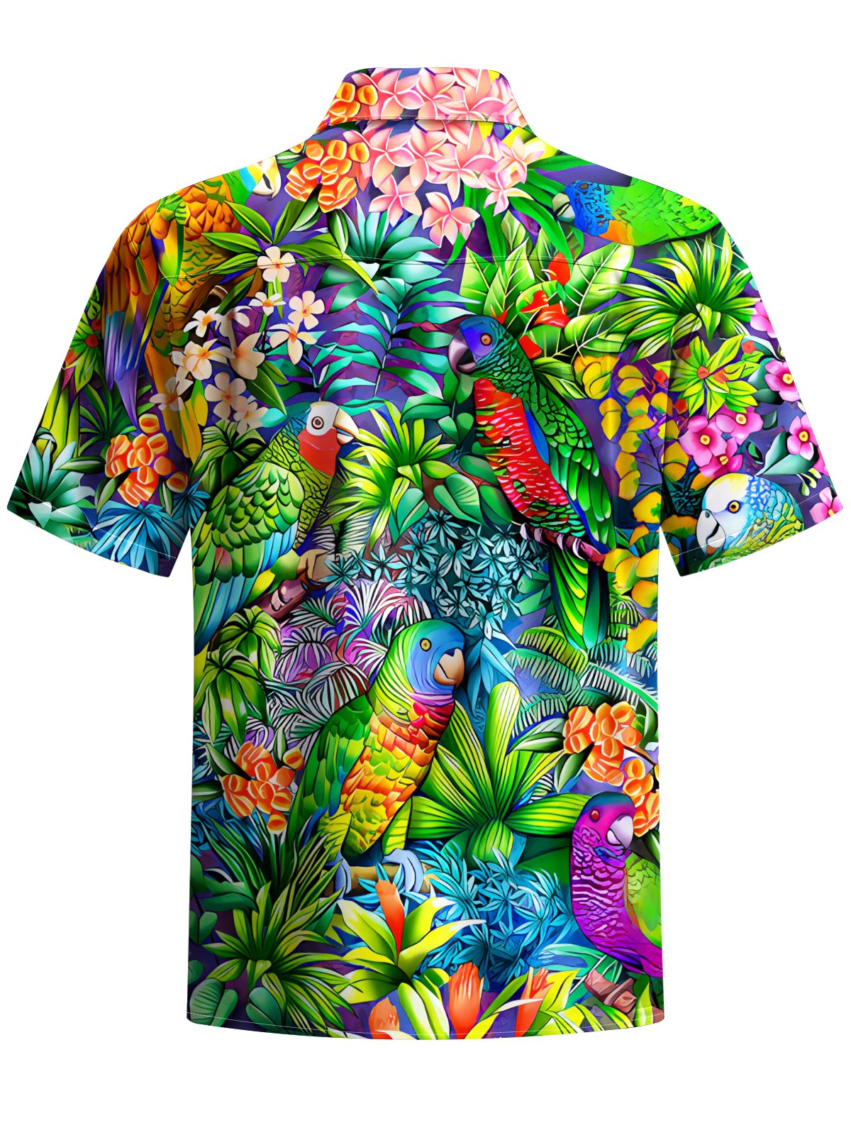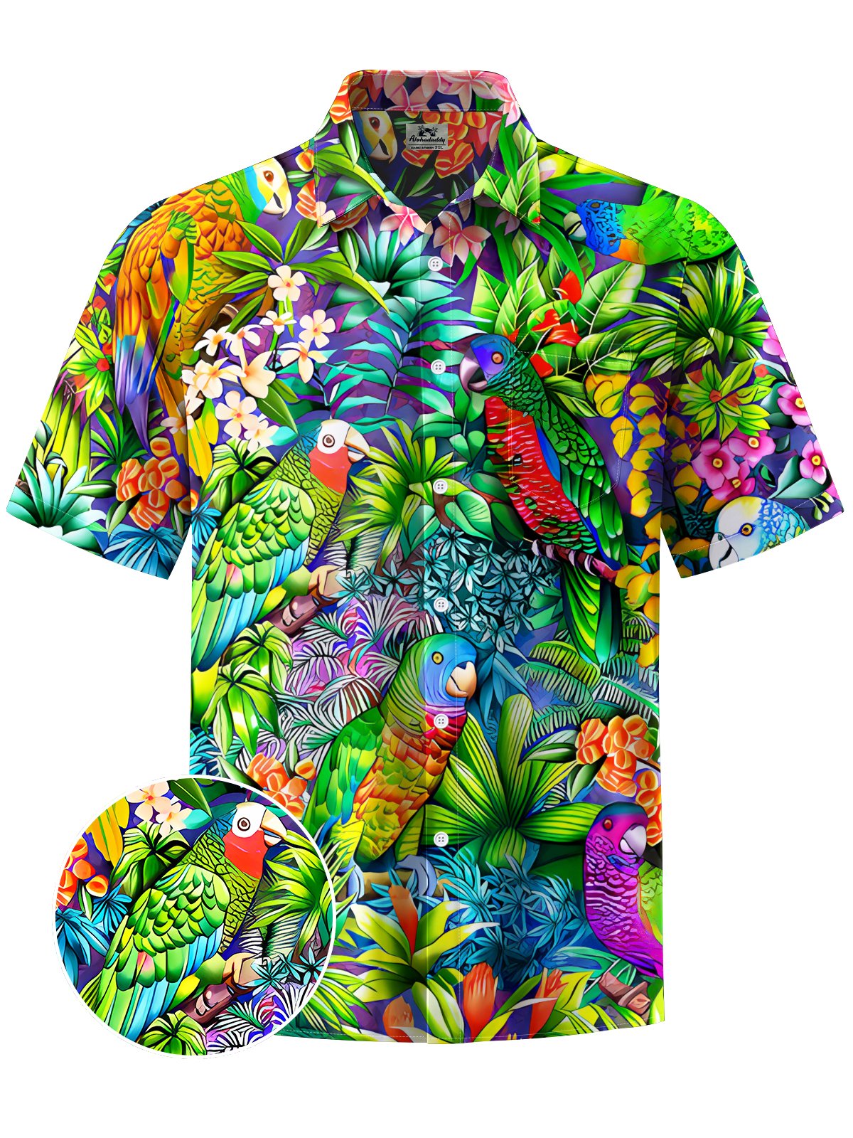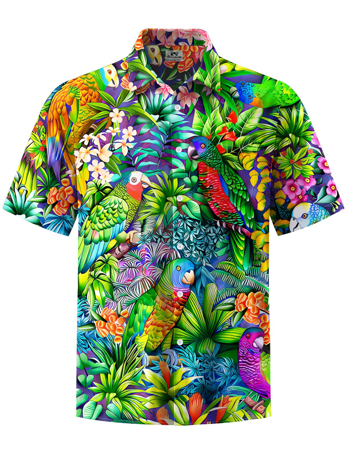 Alohadaddy® Hawaiian Parrot Art Print Moisture Wicking Chest Pocket Mens Short Sleeve Shirt Big & Tall