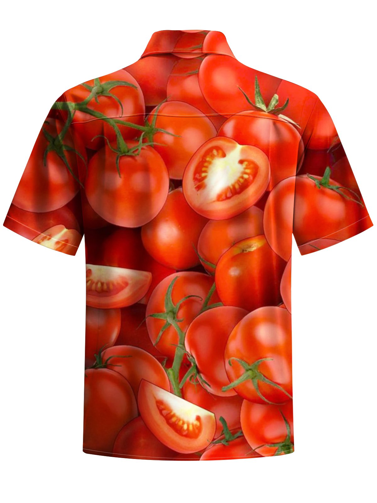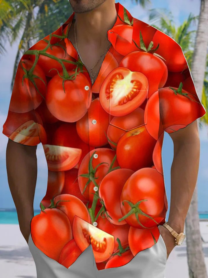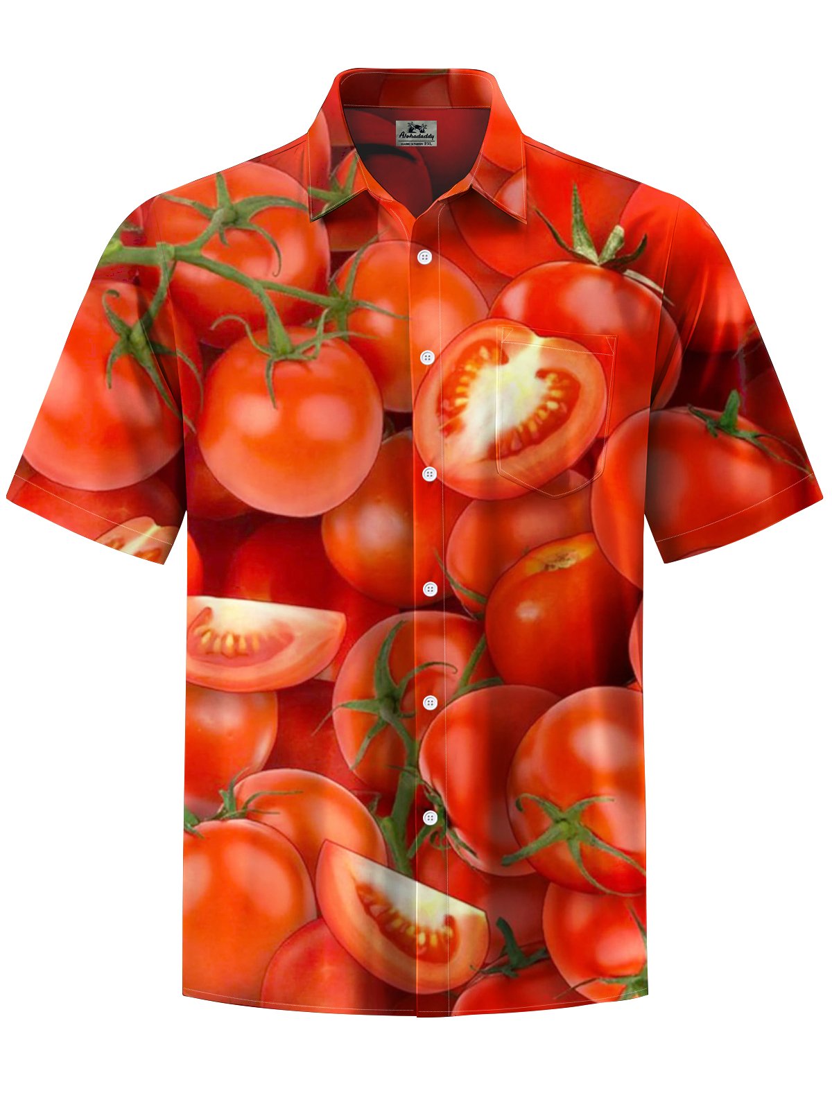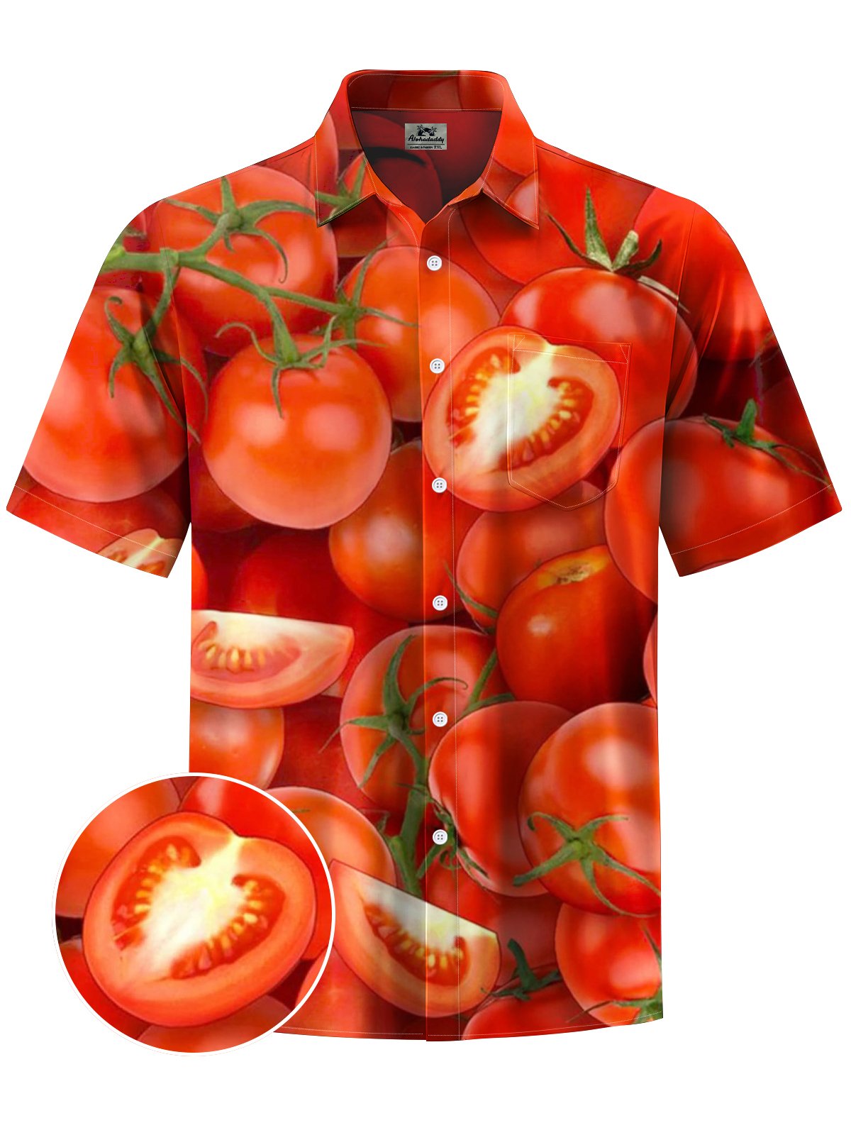 Alohadaddy® Hawaiian Tomato Art Print Chest Pocket Mens Short Sleeve Shirt Big & Tall