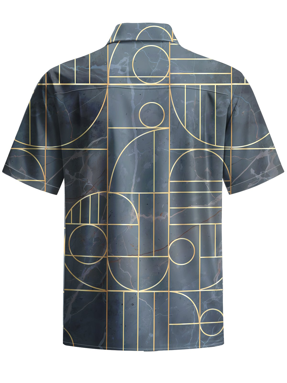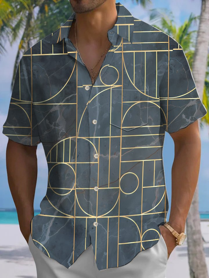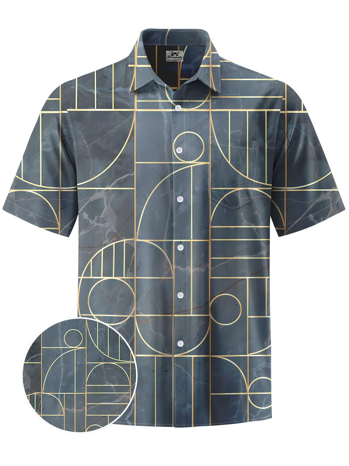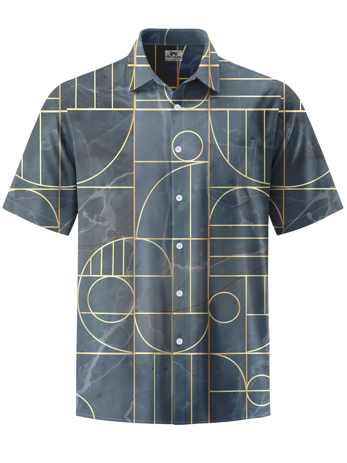 Alohadaddy® Retro Geometric Art Print Chest Pocket Moisture Wicking Men's Short Sleeve Shirt Big & Tall