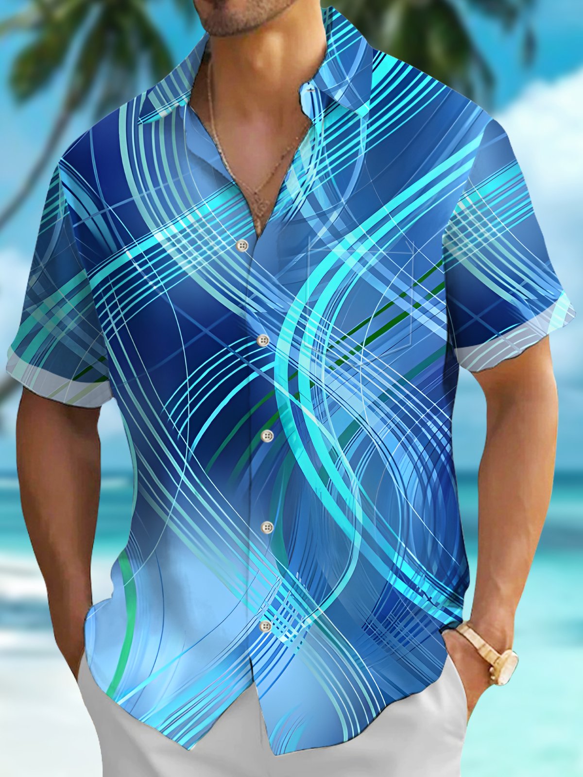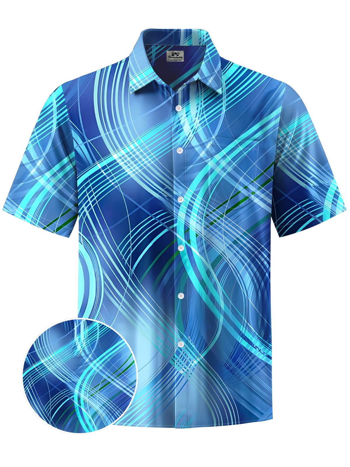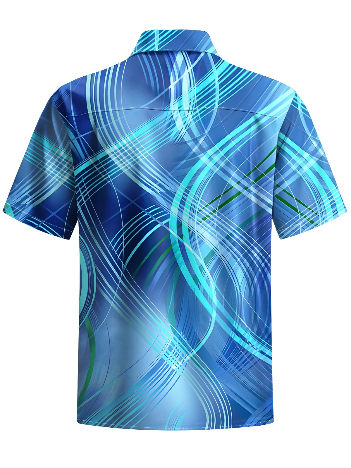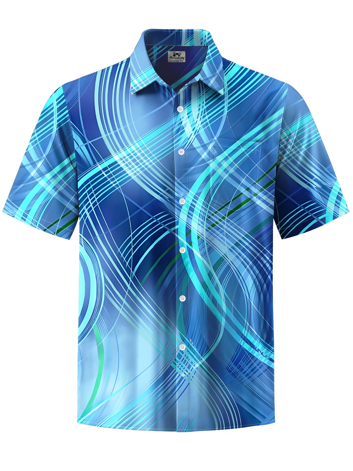 Alohadaddy® Retro Geometric Gradient Line Hawaiian Pocket Men's Short Sleeve Shirt