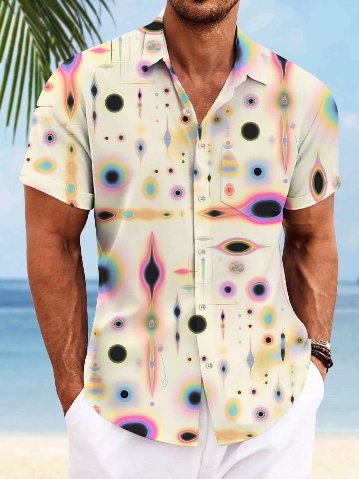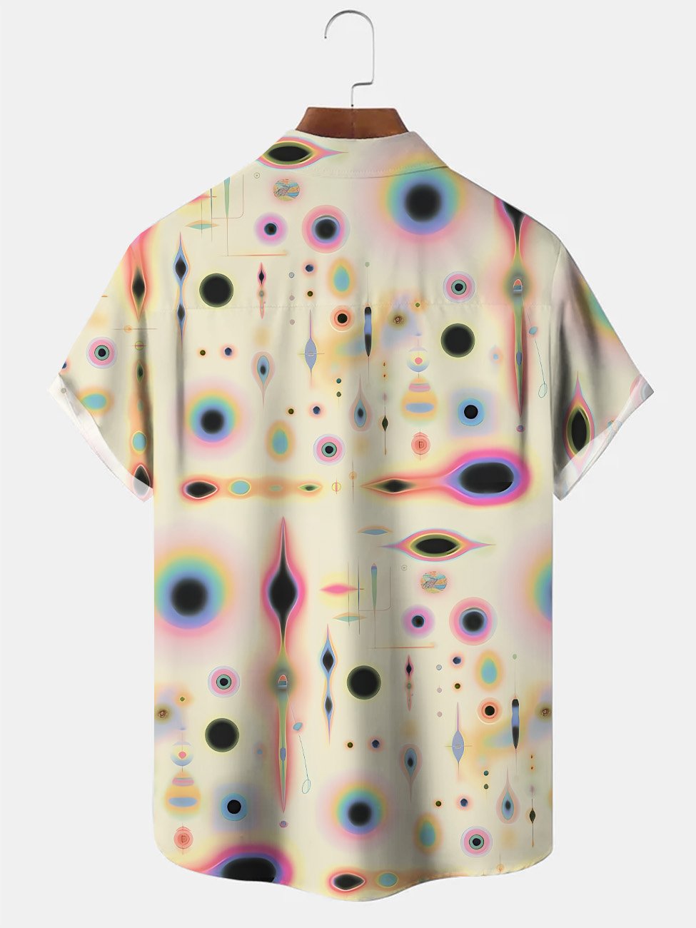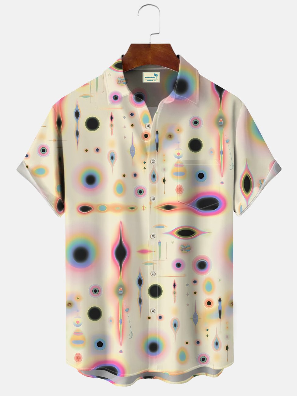 Camisa informal de manga corta con bolsillos y botones con estampado geométrico 3D fluorescente de Alohadaddy
