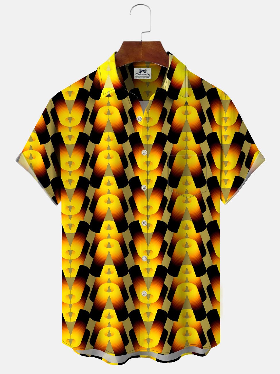 Alohadaddy Geometric 3D Stereo Digital Printing Button Pocket Casual Men's Polyester Shirt