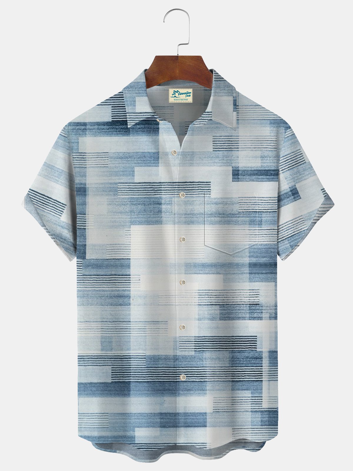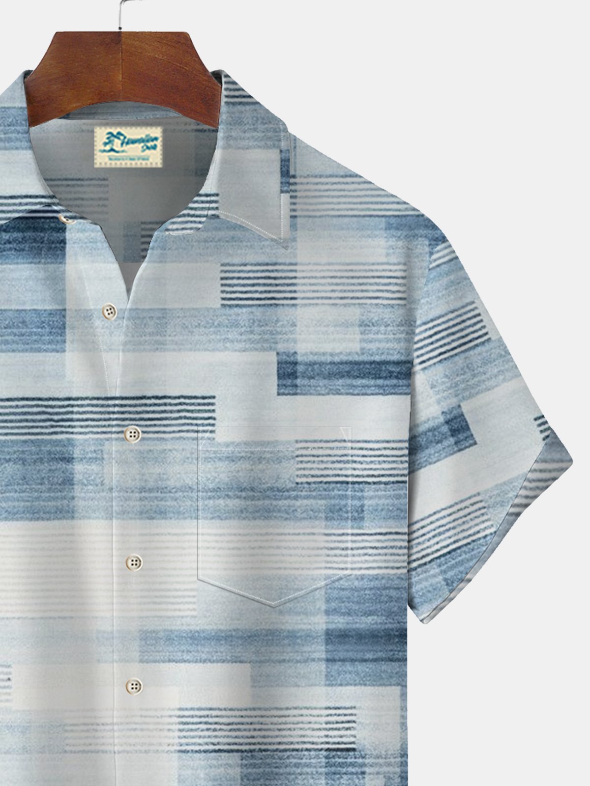 Camisa hawaiana extragrande para hombre con estampado de arte abstracto geométrico y bolsillo para playa Alohadaddy