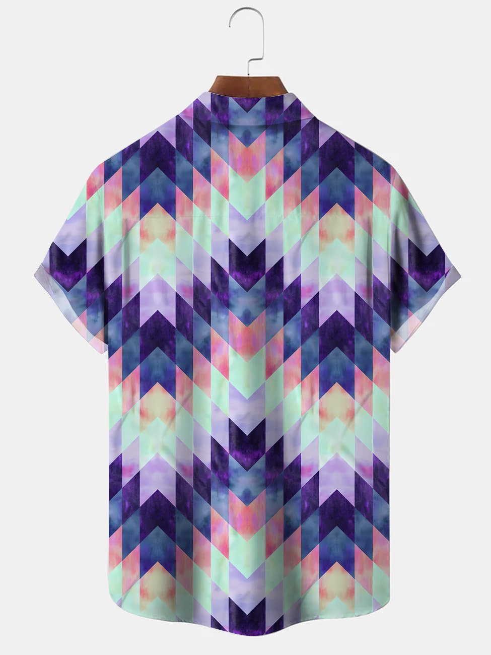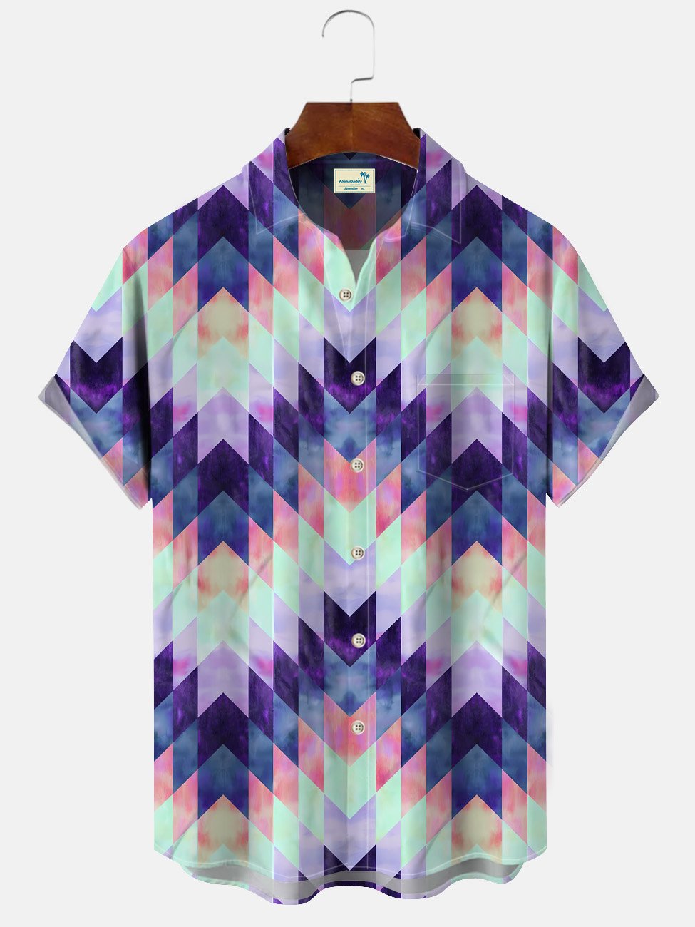 Camisa informal de manga corta con bolsillo con botones y diseño geométrico de diamantes de Alohadaddy