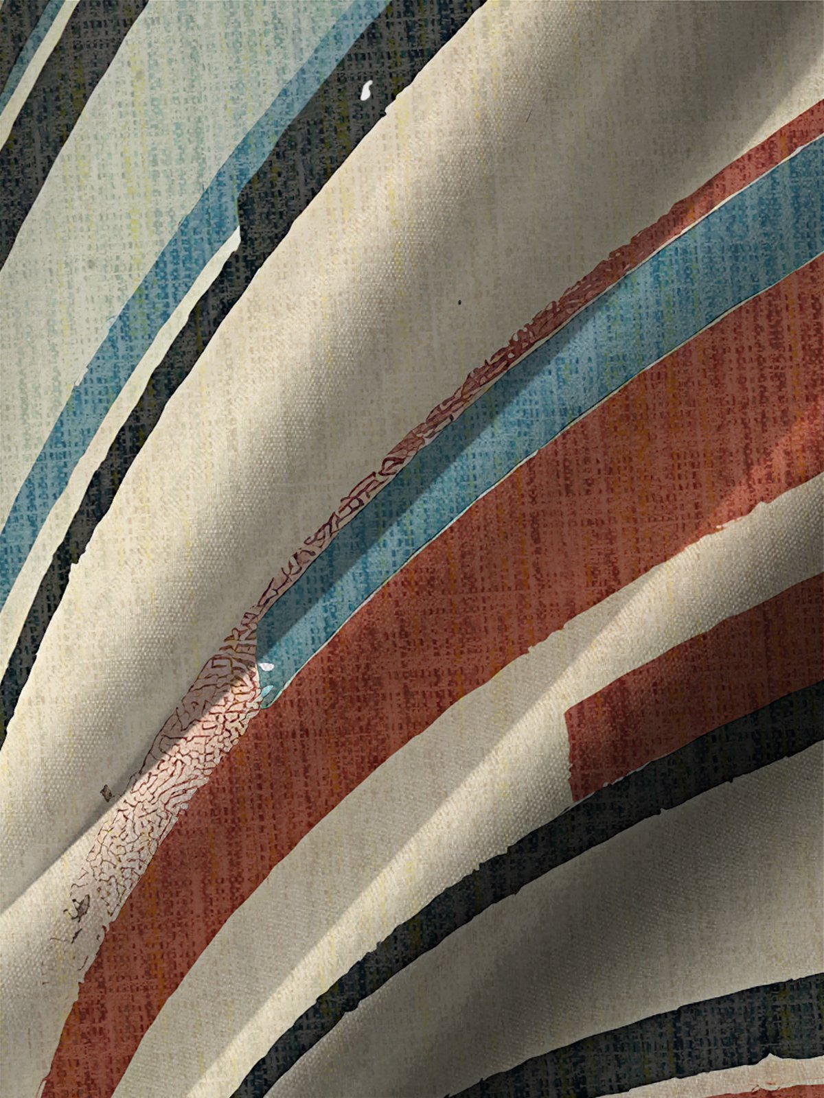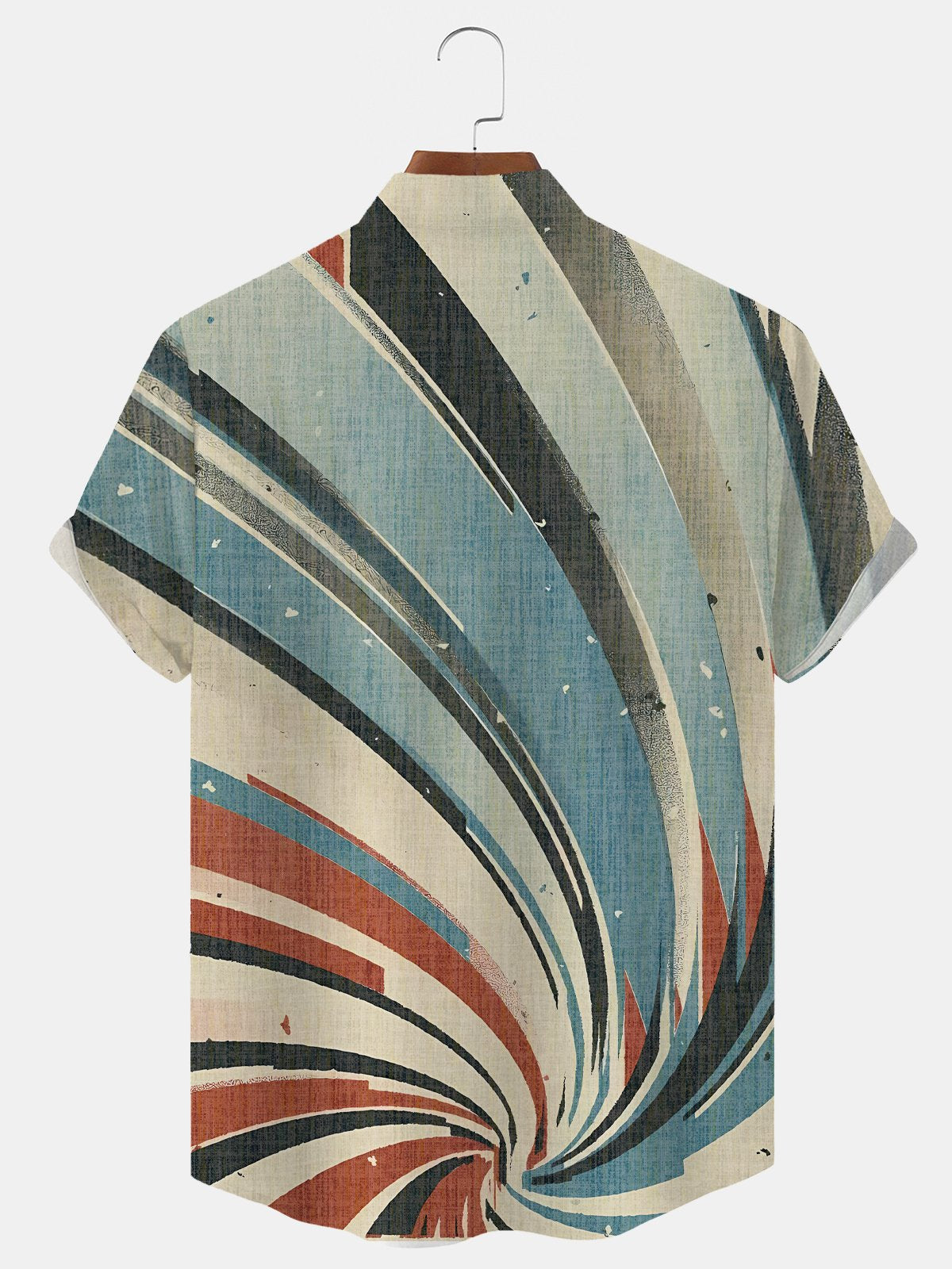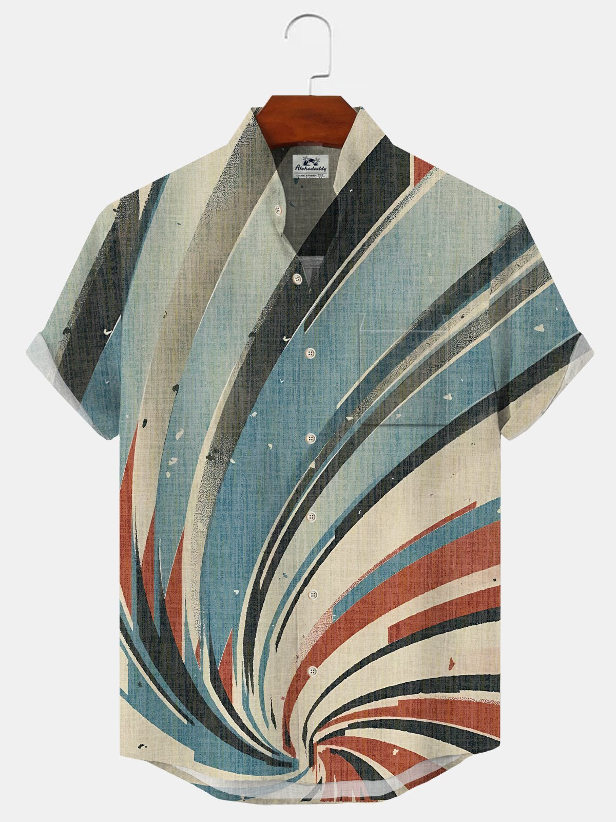 Alohadaddy Geometric Retro Button Pocket Casual Short Sleeve Stand Collar Shirt