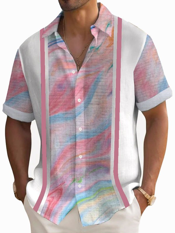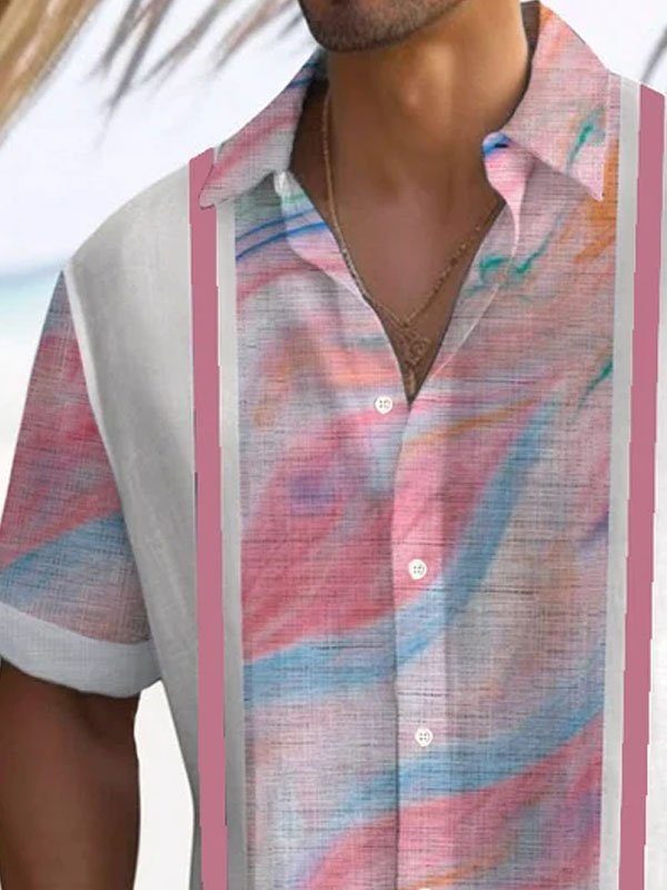 Camisa de manga corta con botones y estampado de contraste degradado retro para hombre de Alohadaddy