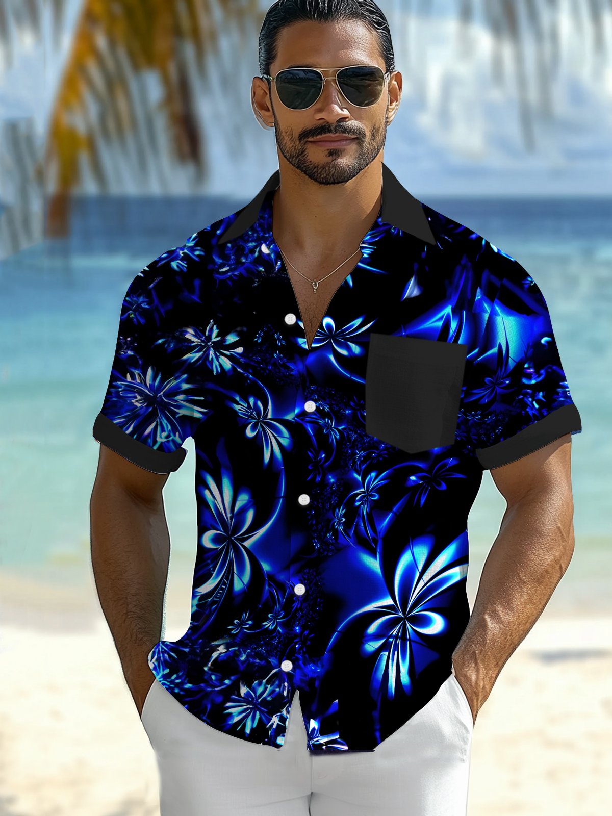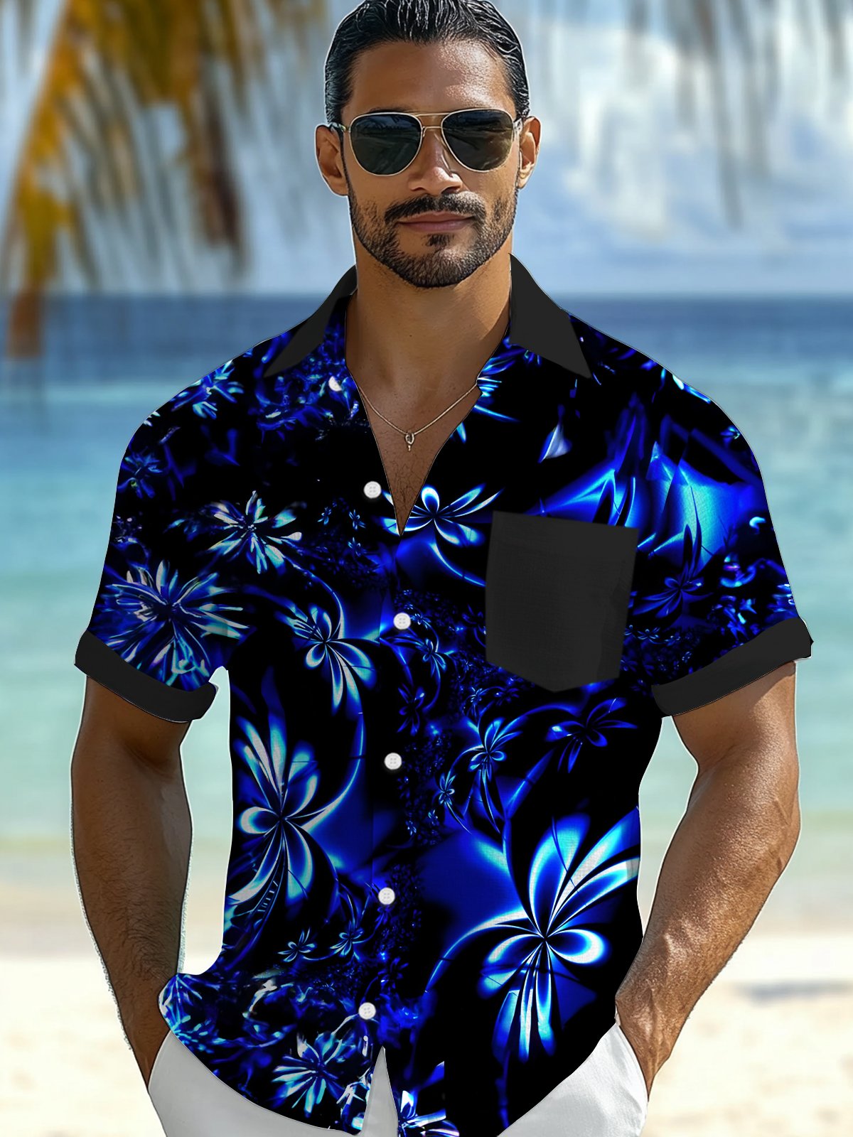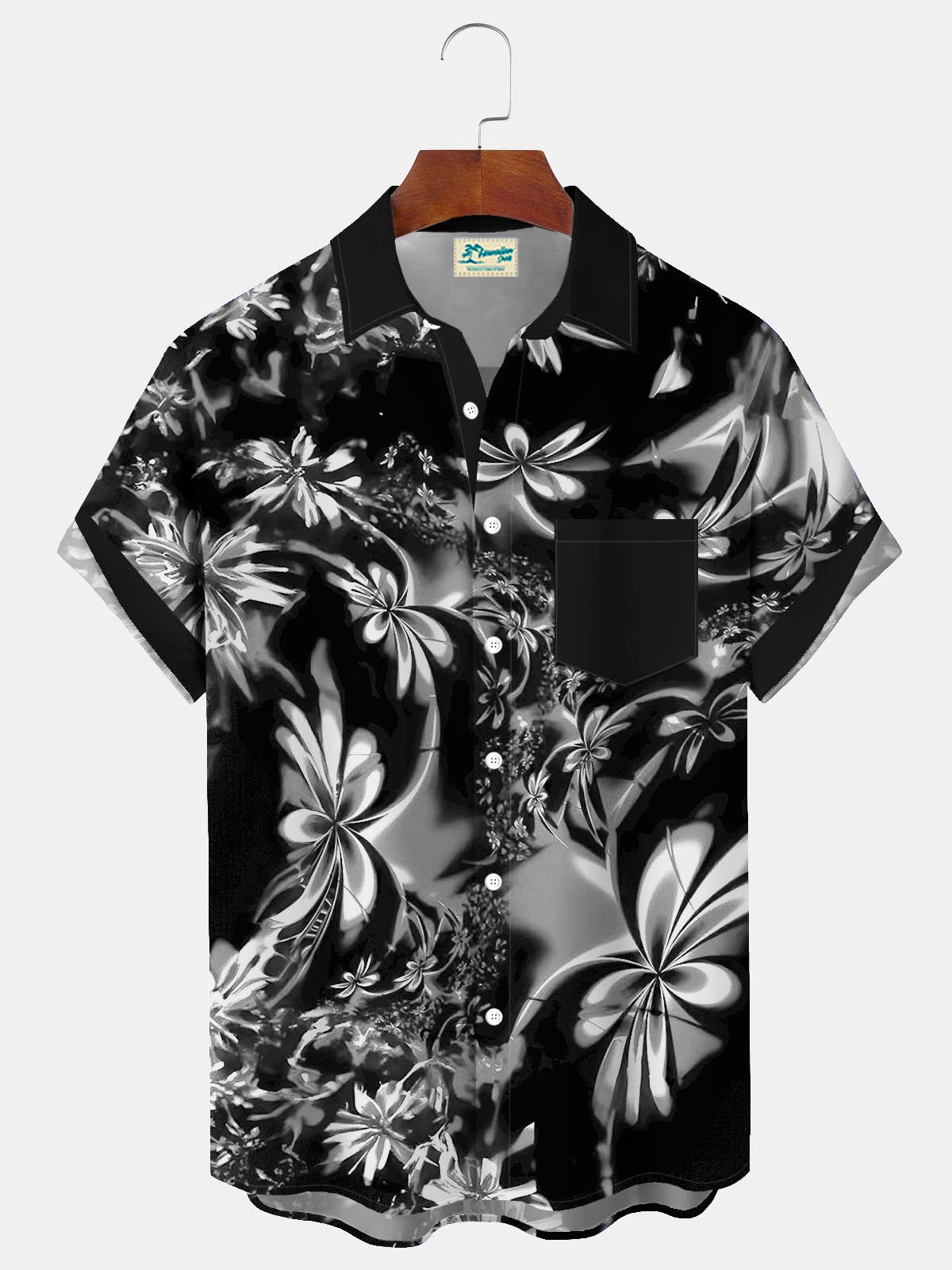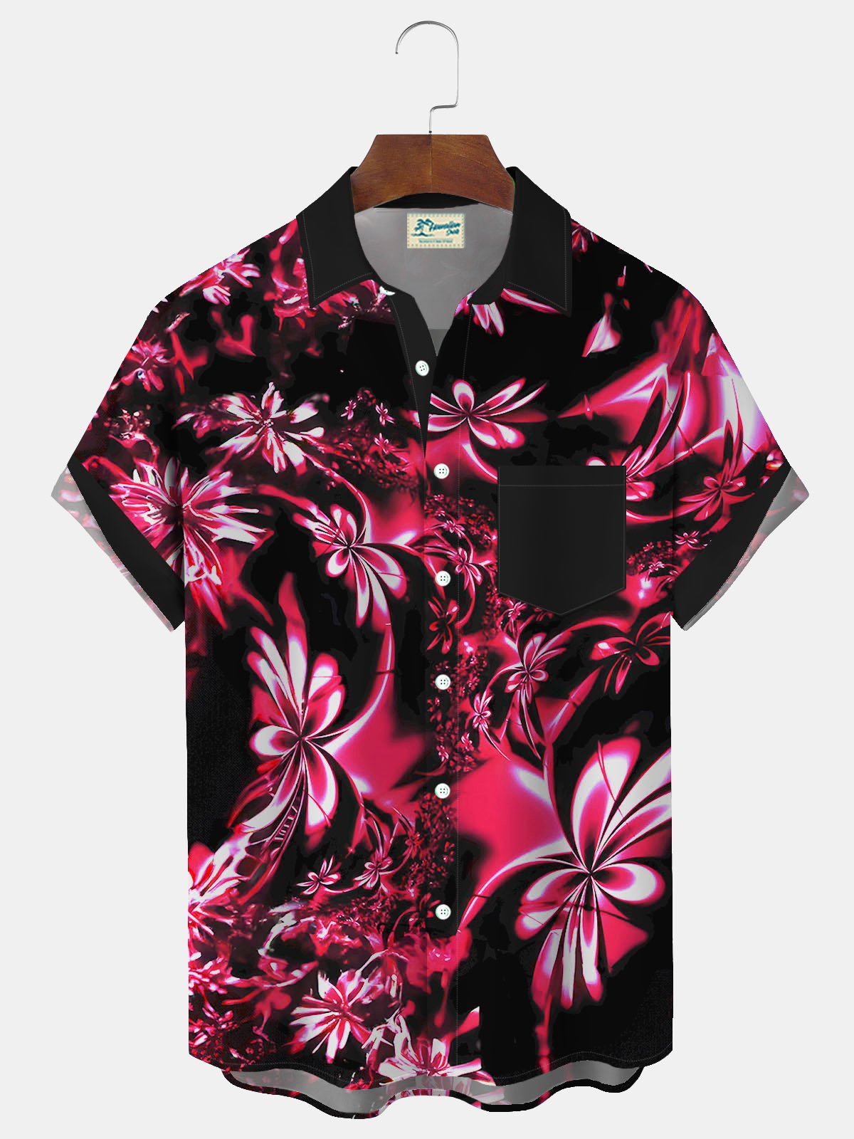 Alohadaddy Hawaiian Floral 3D Print Men's Button Pocket Short Sleeve Shirt