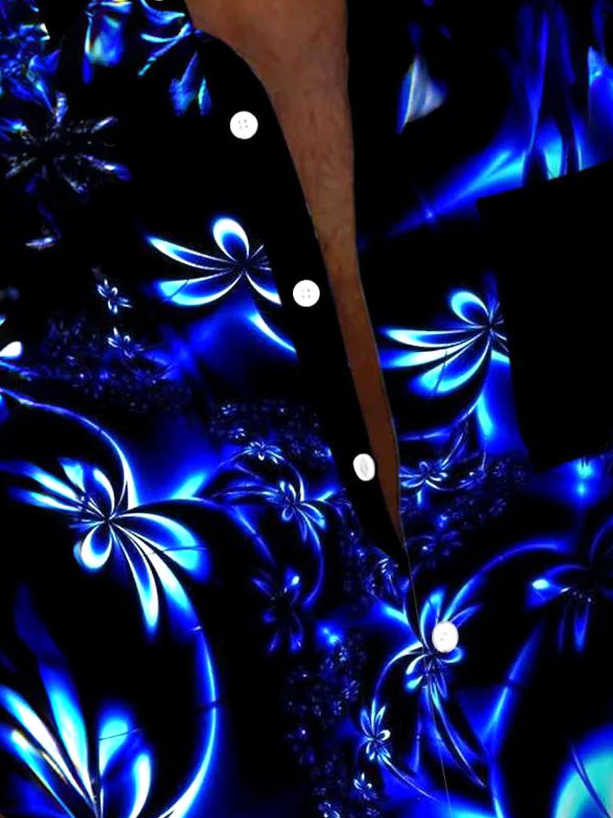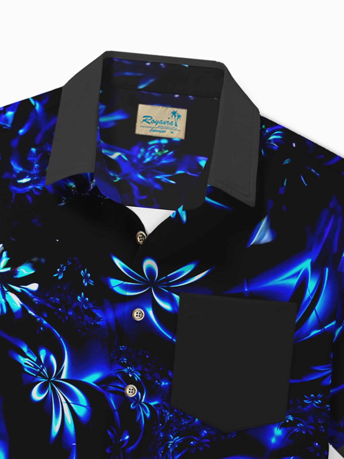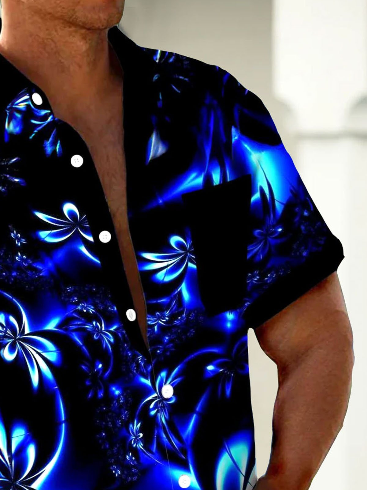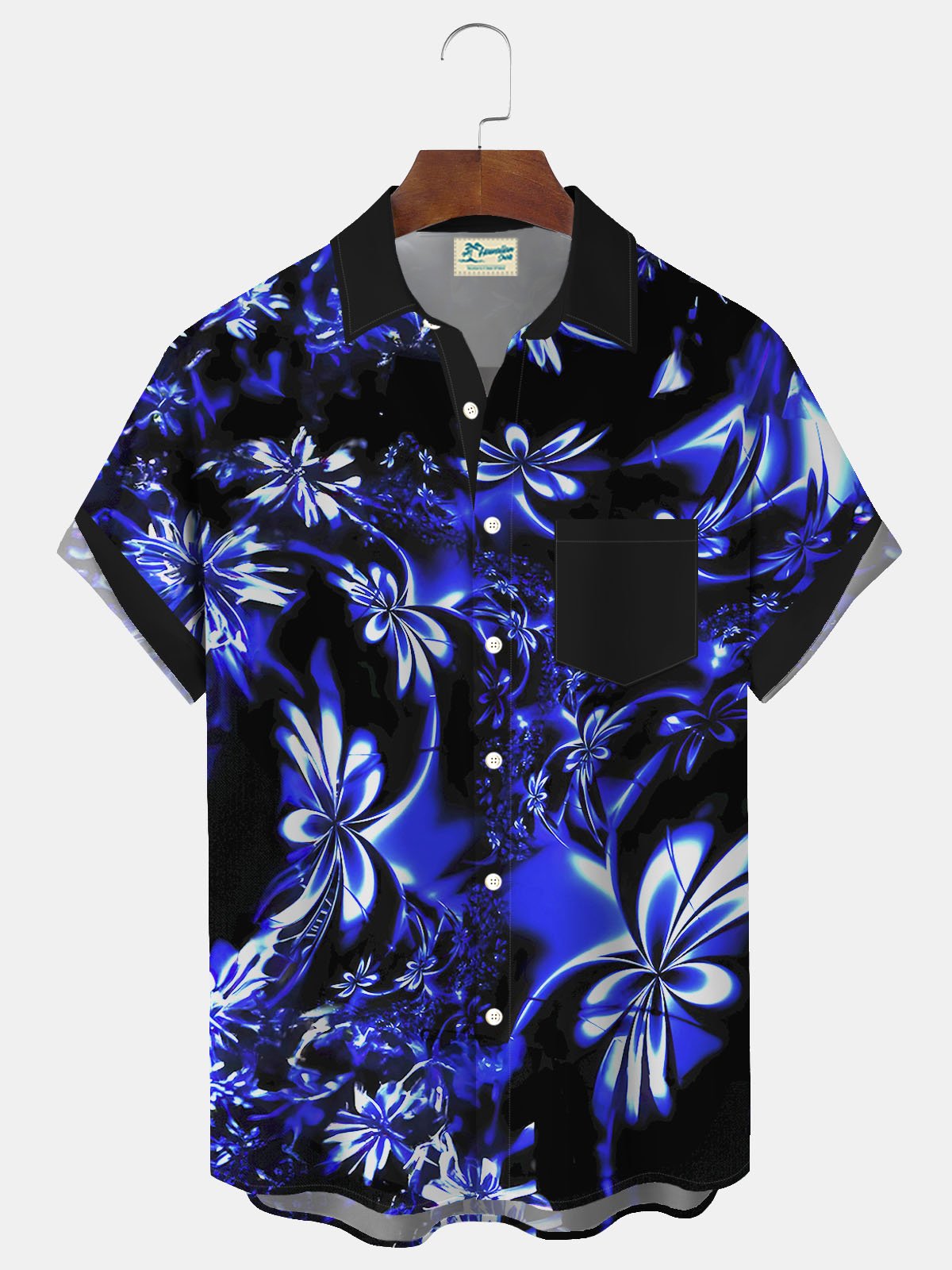Alohadaddy Hawaiian Floral 3D Print Men's Button Pocket Short Sleeve Shirt