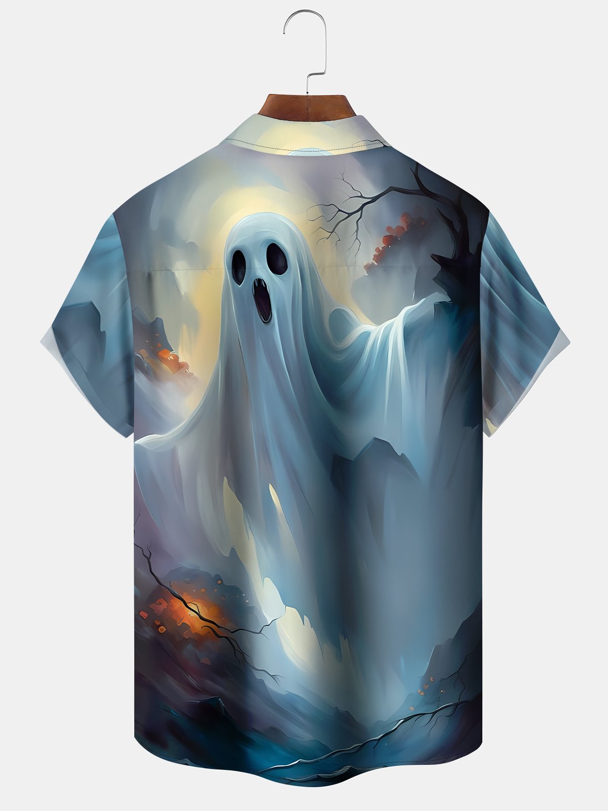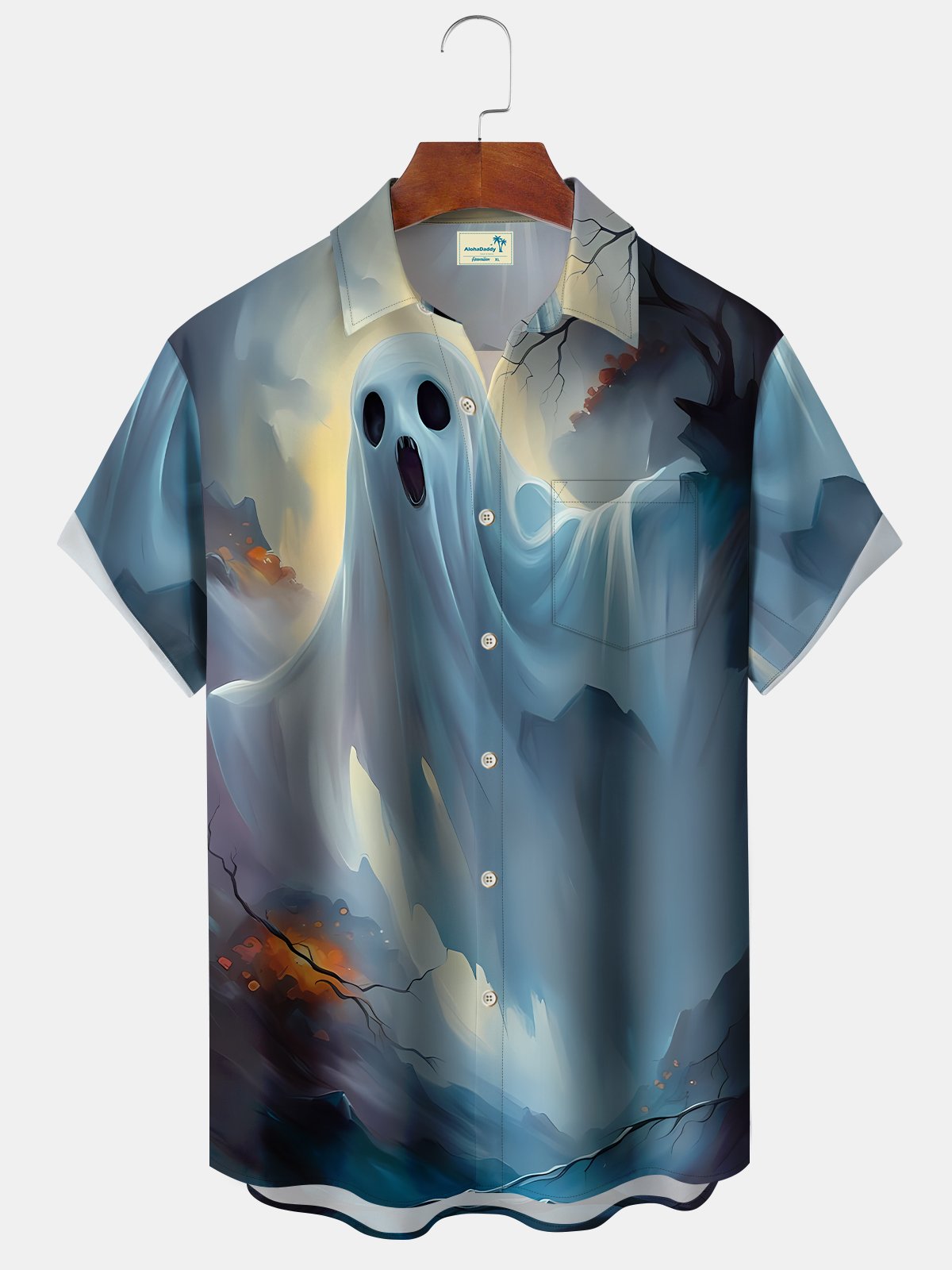 Camisa de manga corta con bolsillo y botones para hombre con estampado digital 3D de Ghost Rider de Halloween de Alohadaddy