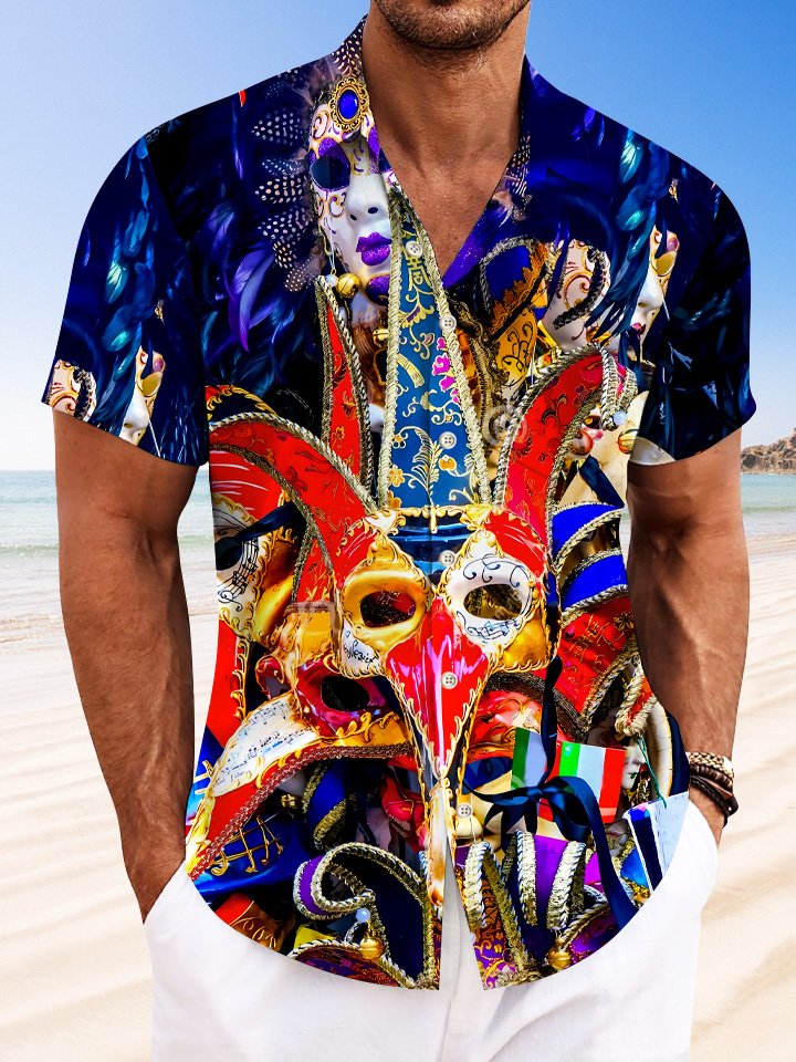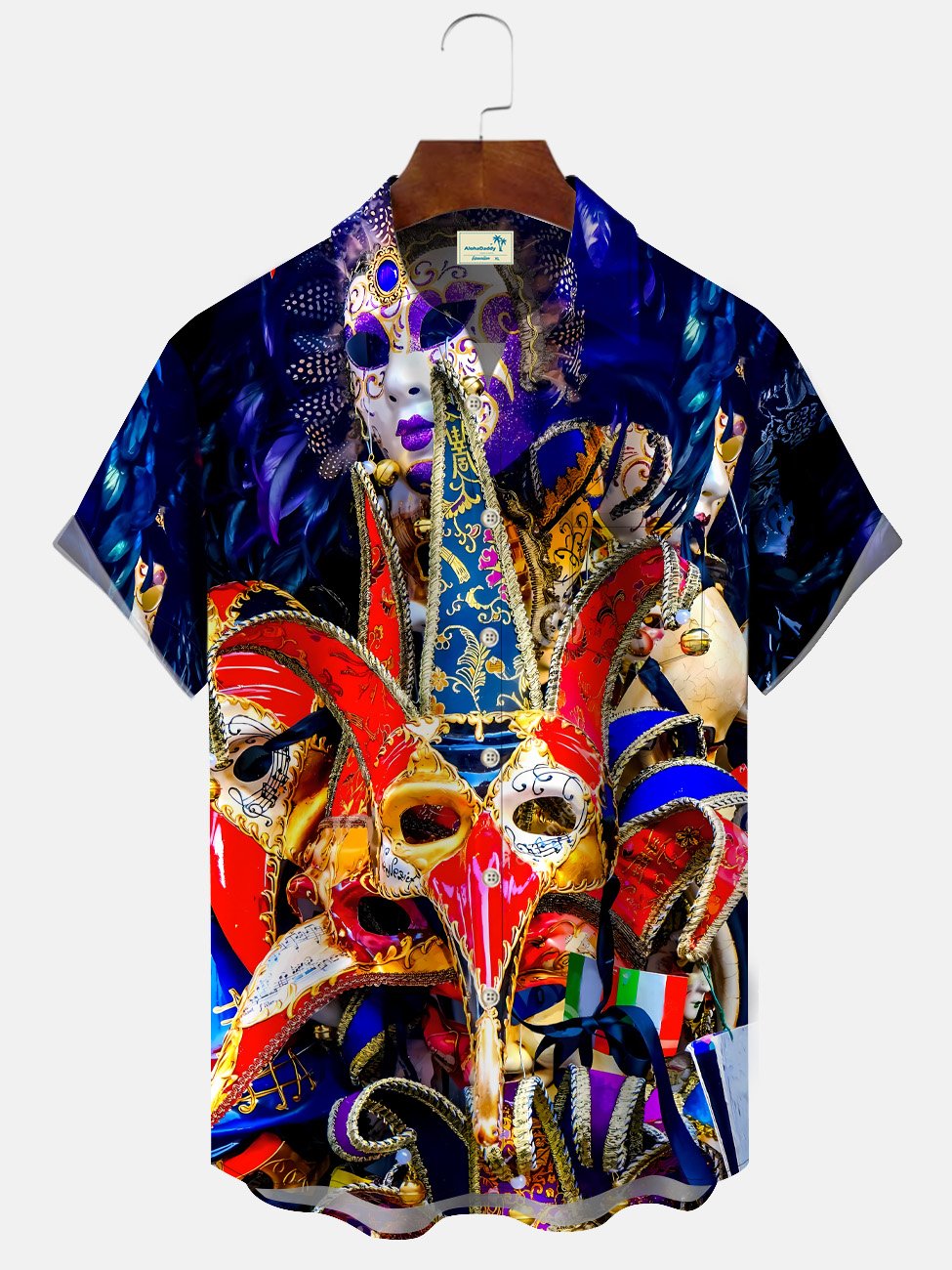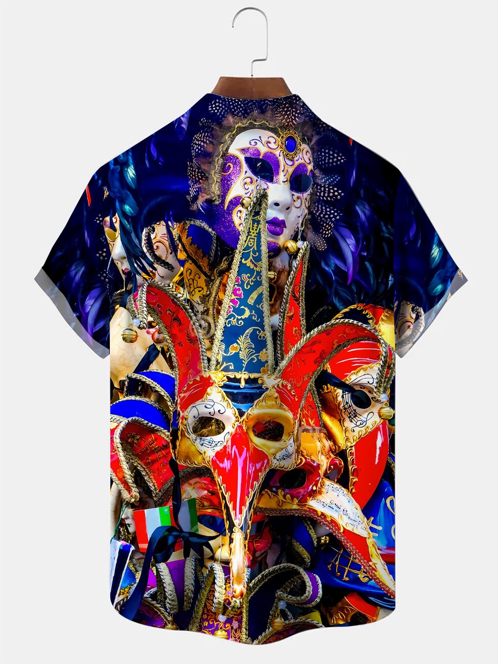 Camisa informal de manga corta con bolsillo y botones y máscara de Venecia para Halloween de Alohadaddy