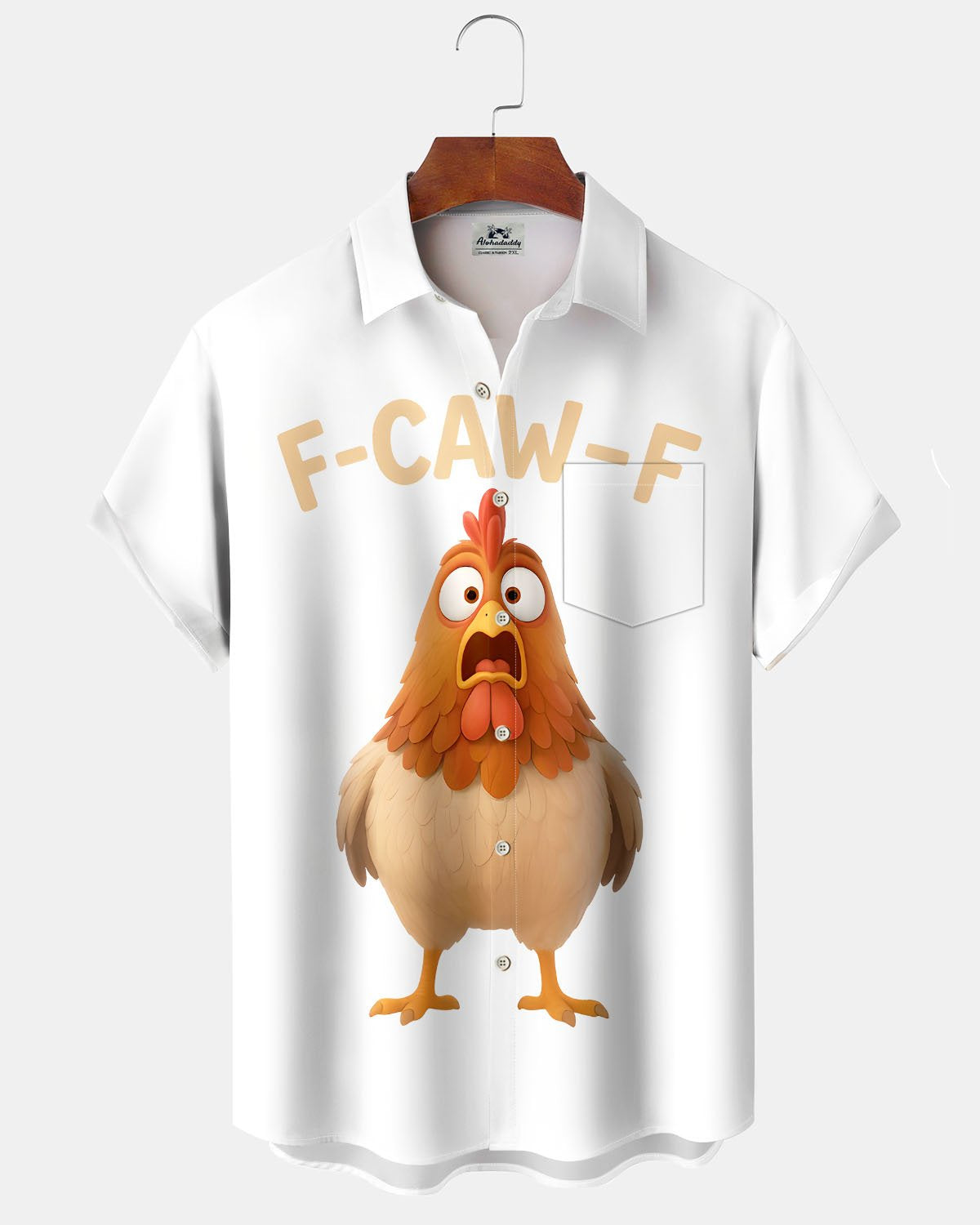 Alohadaddy® Casual Rooster White Art Print Men's Short-Sleeve Shirt Big & Tall
