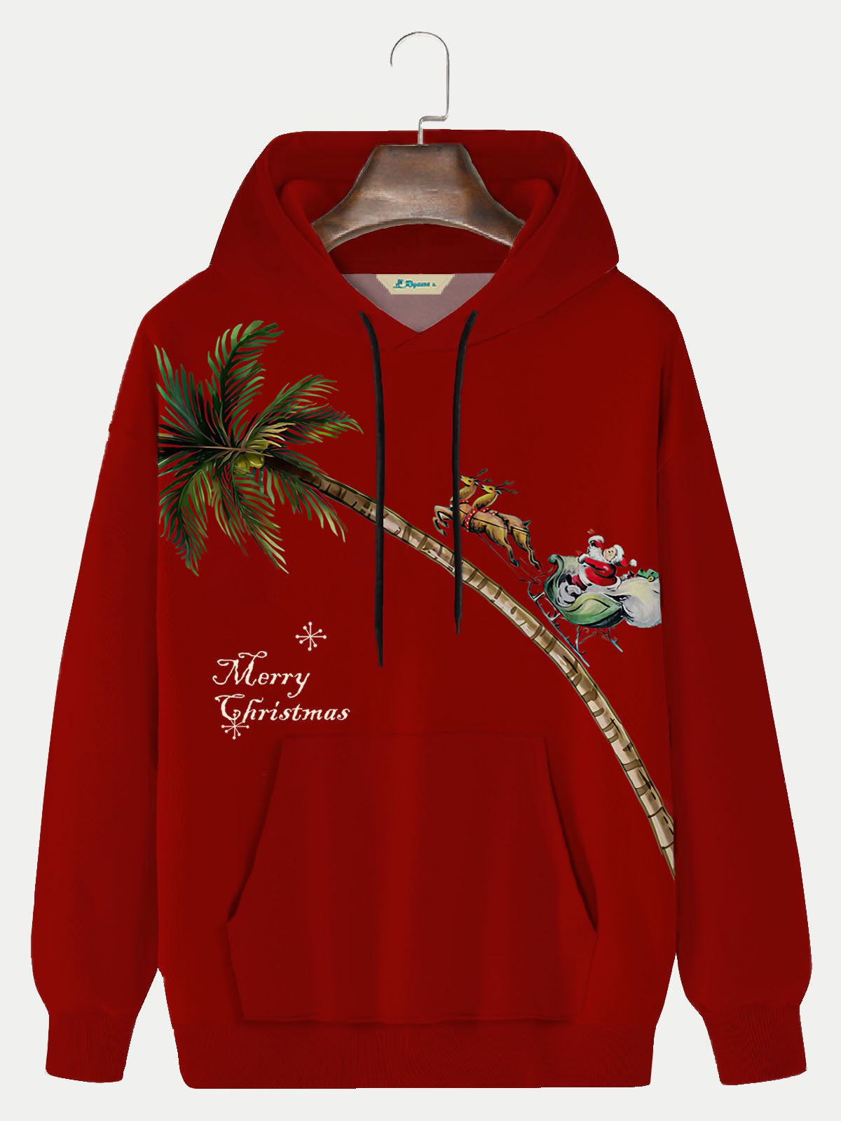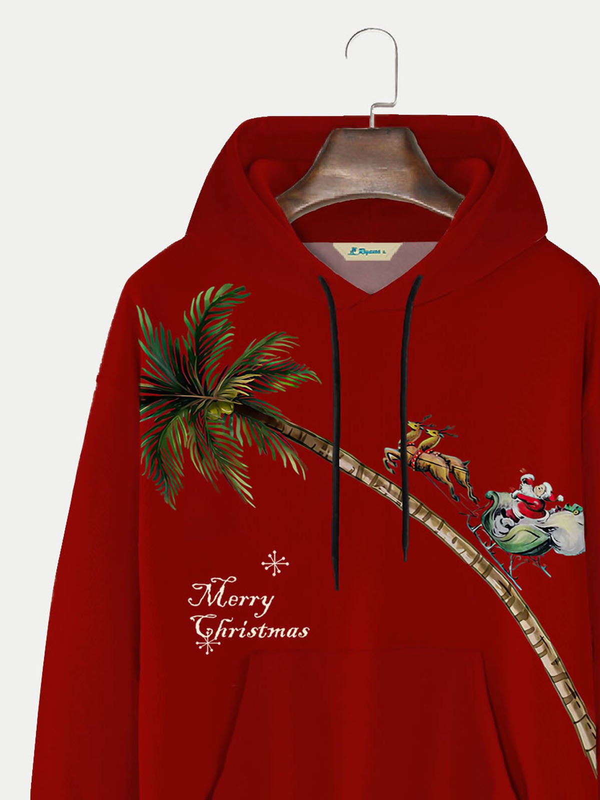 Sudadera con capucha roja de Navidad para hombre Sudadera con capucha roja de talla grande con diseño de árbol de Navidad, Papá Noel y alce