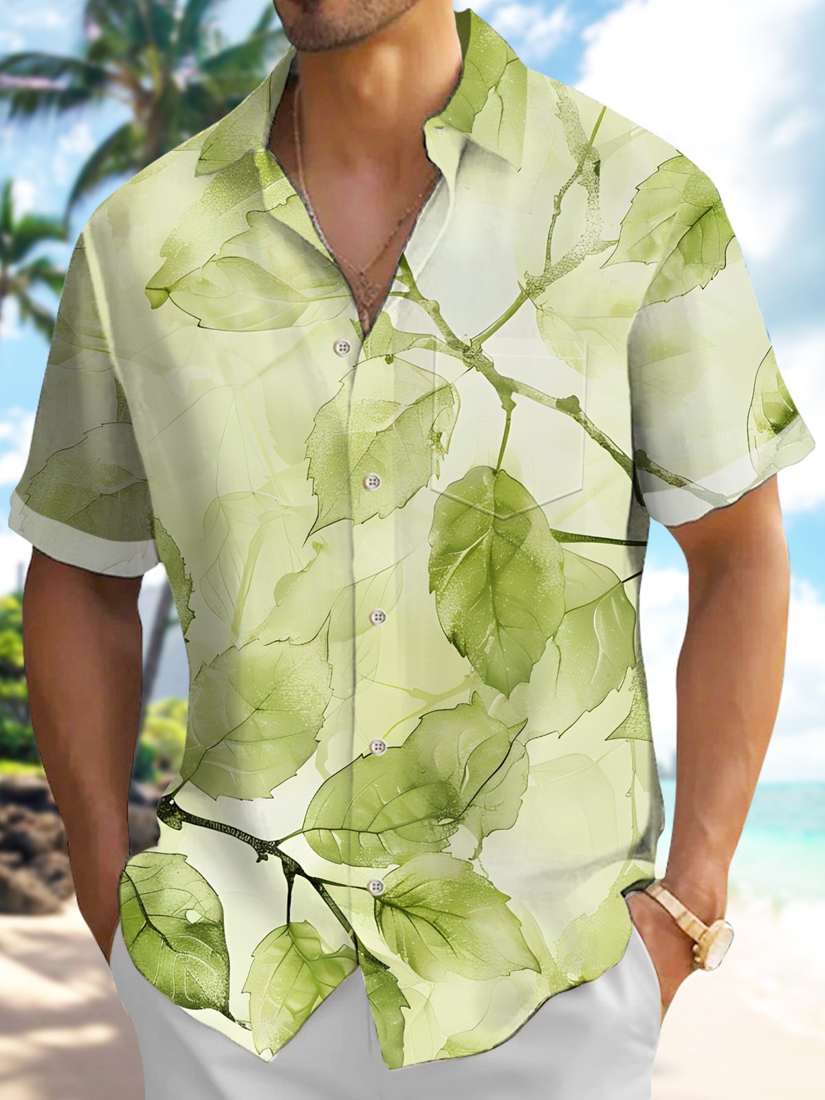 Alohadaddy® Hawaiian Floral Leaves Ombre Short Sleeve Pocket Shirt