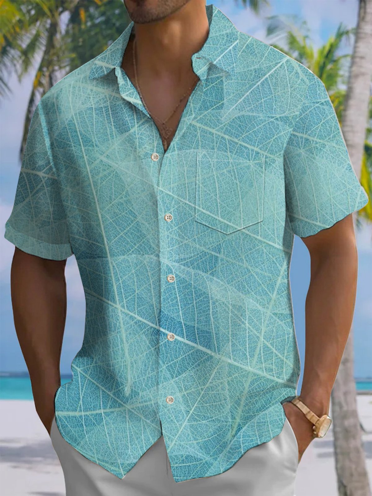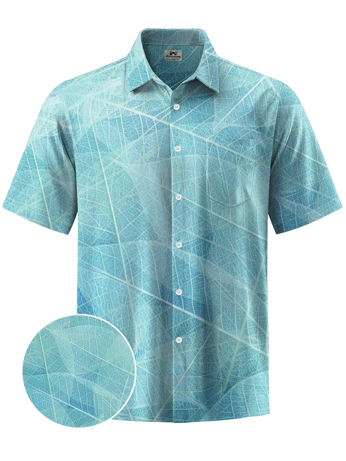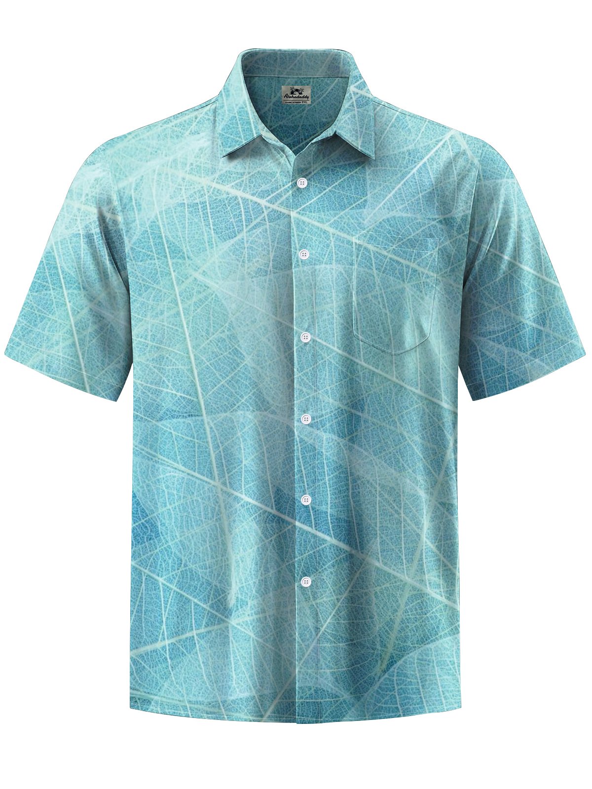 Alohadaddy® Hawaiian Leaves Art Print Men's Moisture Wicking Short Sleeve Shirt Big & Tall