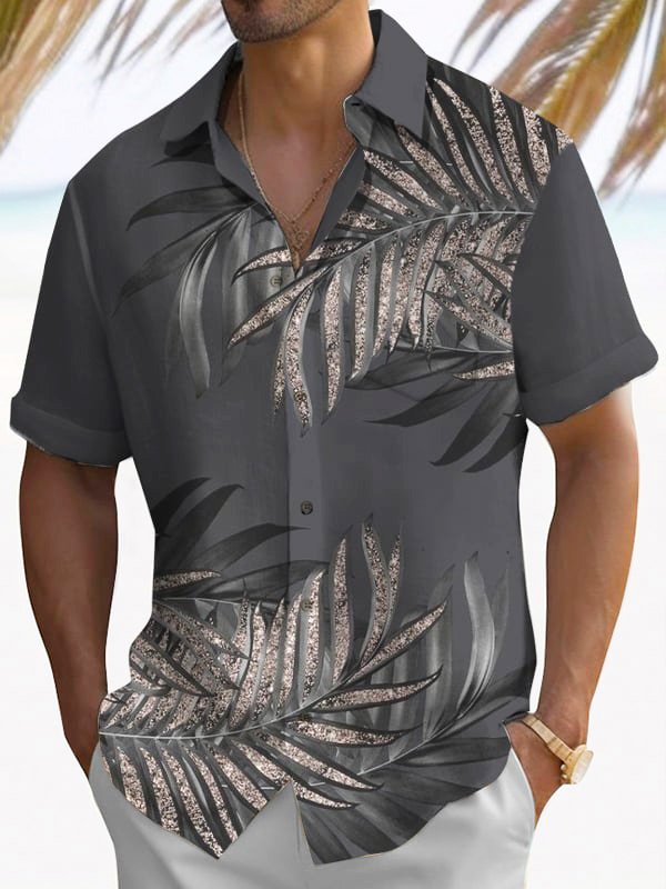 Camisa hawaiana elástica con bolsillos para campamento, para hombre, con hojas tropicales y vacaciones en la playa de Alohadaddy, talla grande