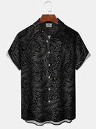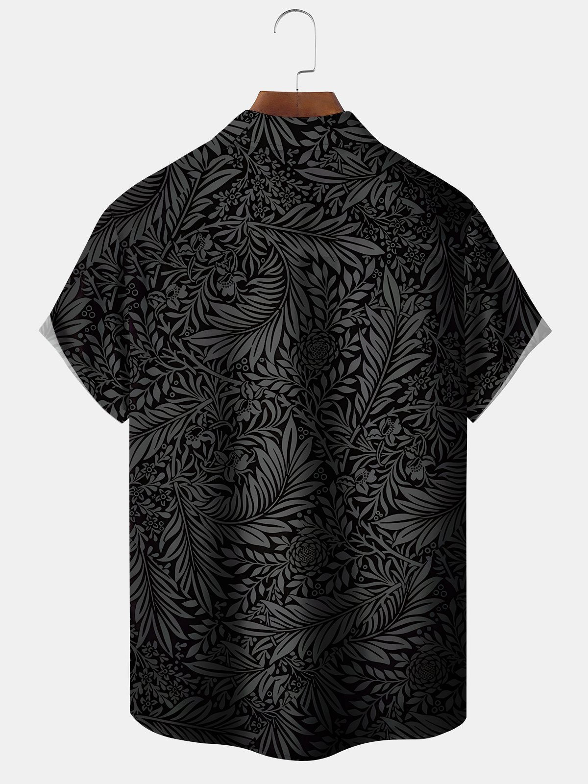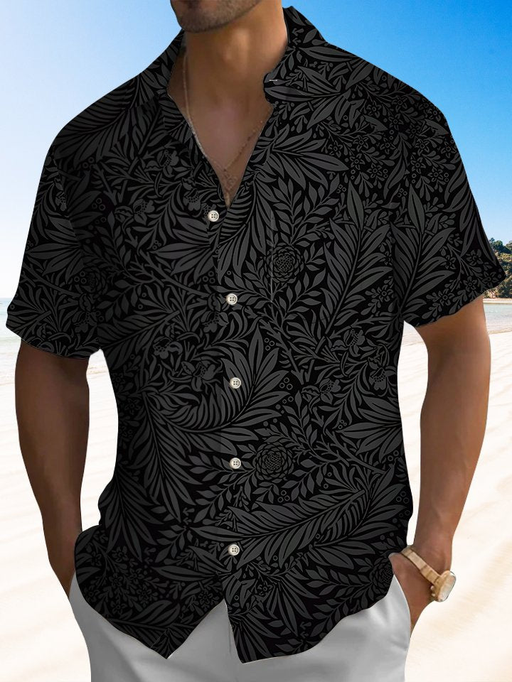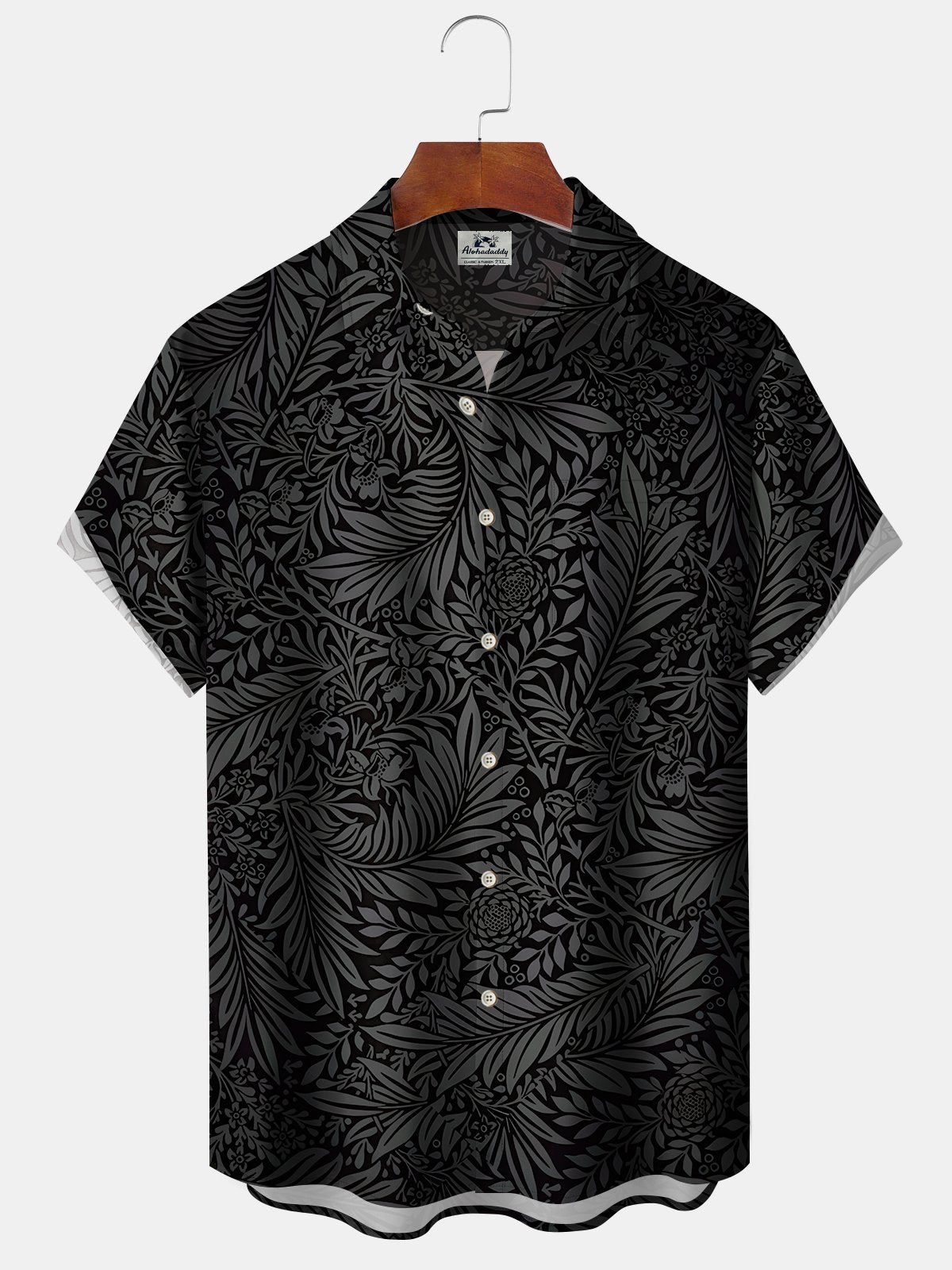 Alohadaddy Hawaiian Dark Pattern Plant Leaves Button Cardigan Pocket Elastic Large Size Short Sleeve Shirt