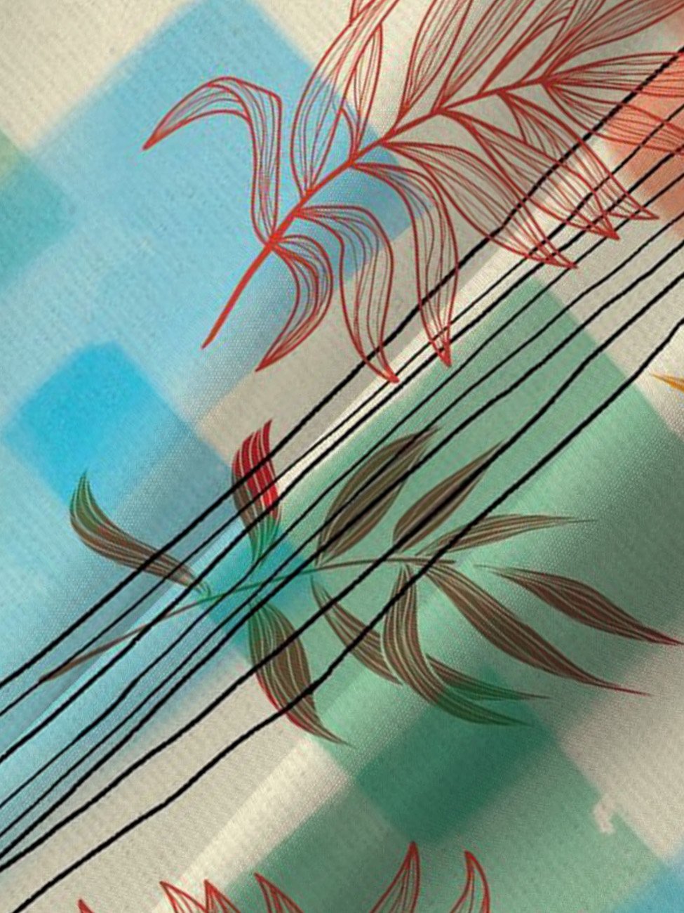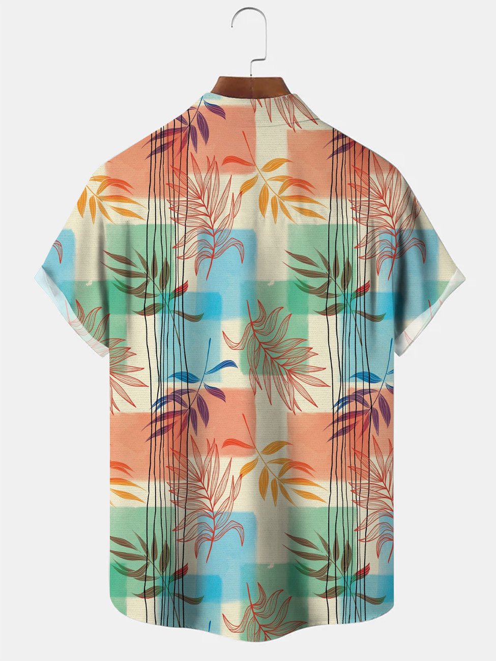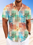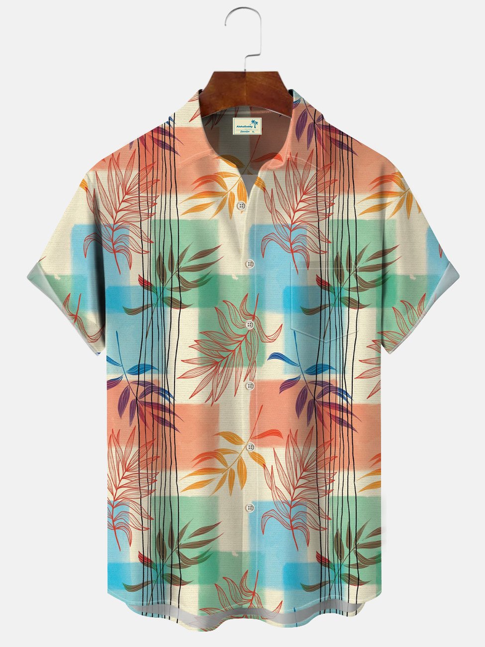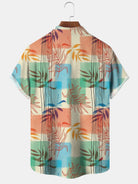 Camisa casual de manga corta con botones y bolsillo para hombre con rayas en contraste y hojas tropicales de Alohadaddy