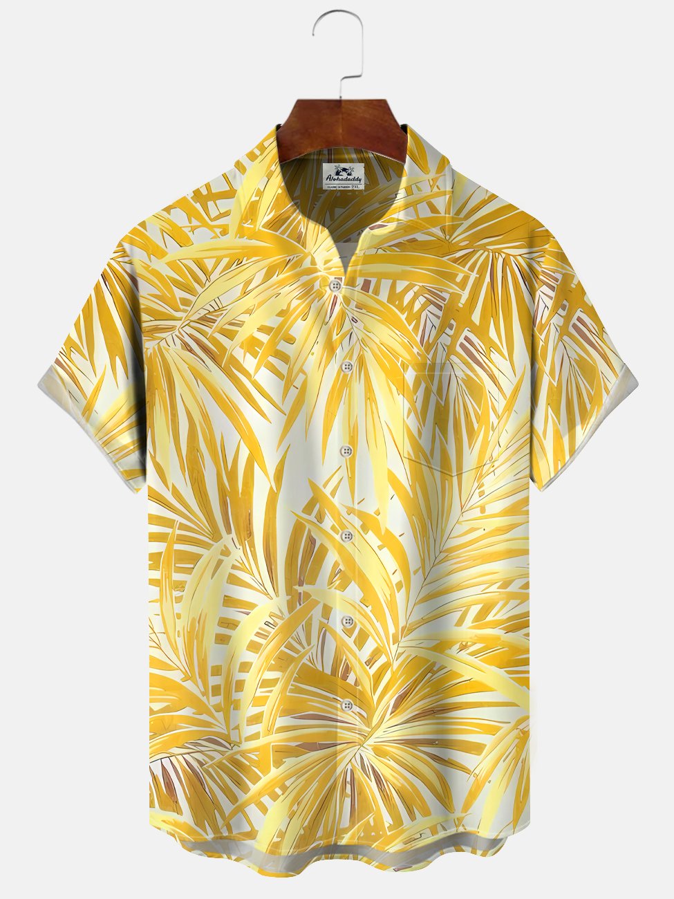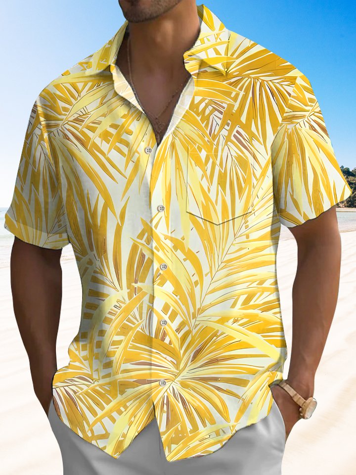 Alohadaddy Plant Coconut Tree Pocket Casual Short Sleeve Shirt