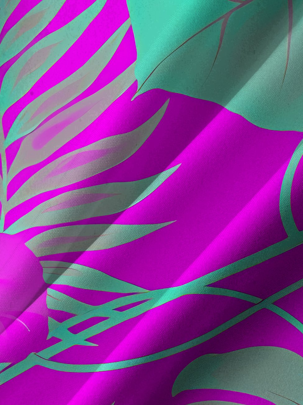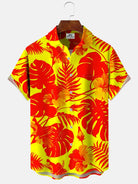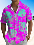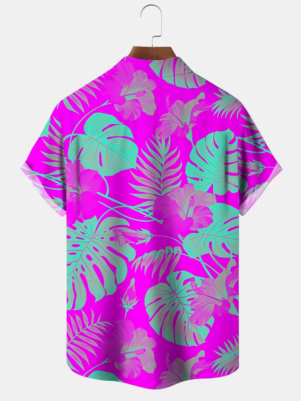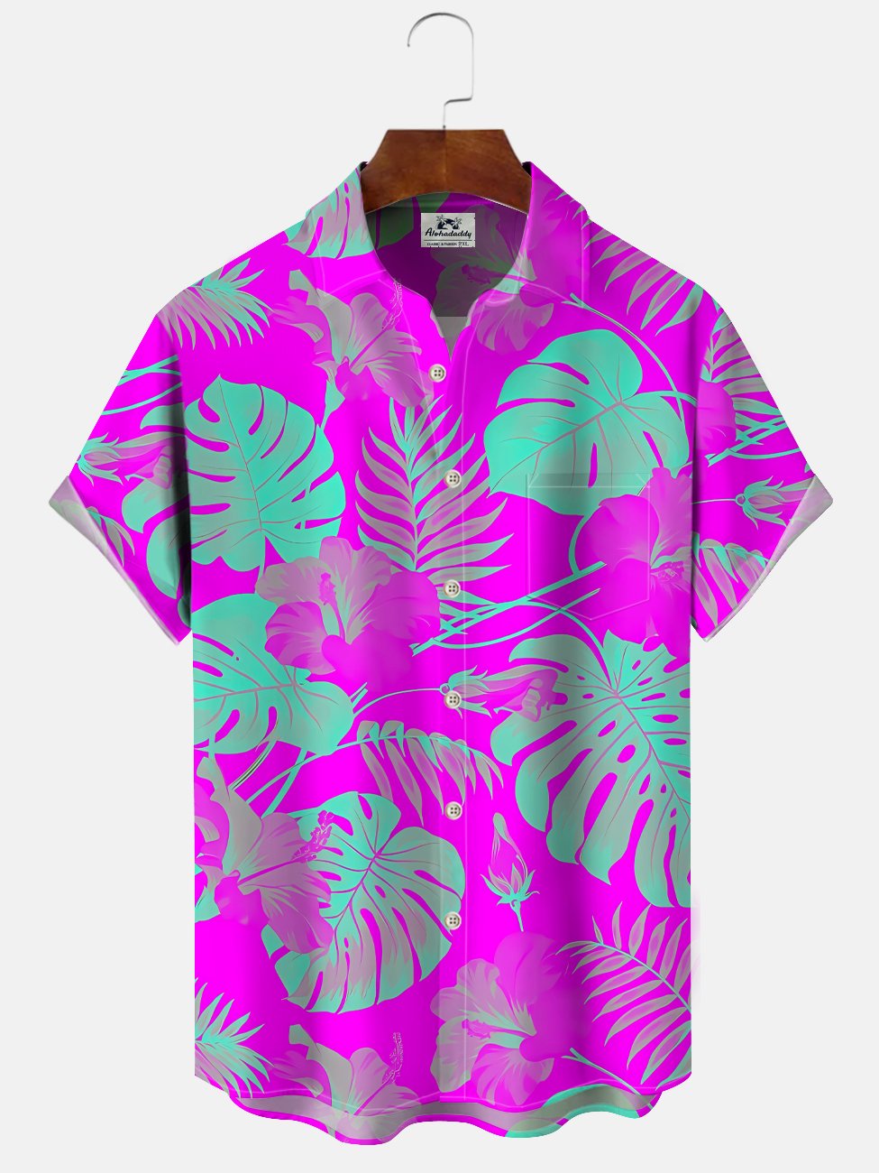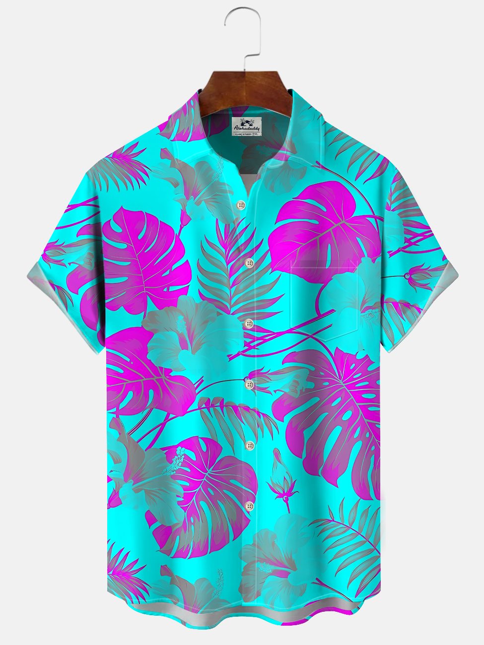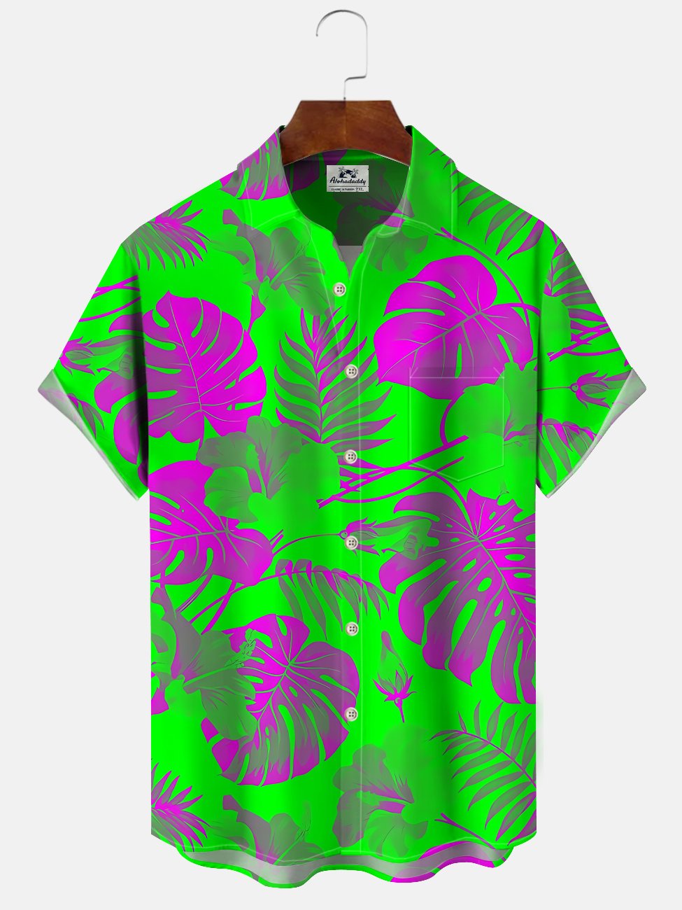 Alohadaddy Plant Leaves Fluorescent Button Pocket Casual Short Sleeve Shirt