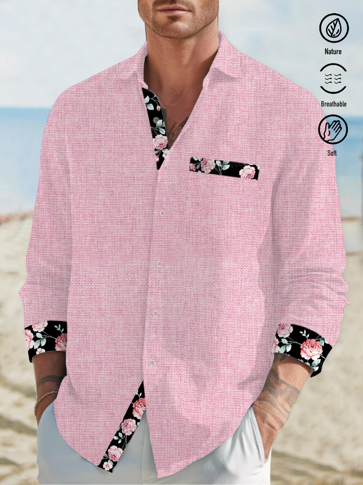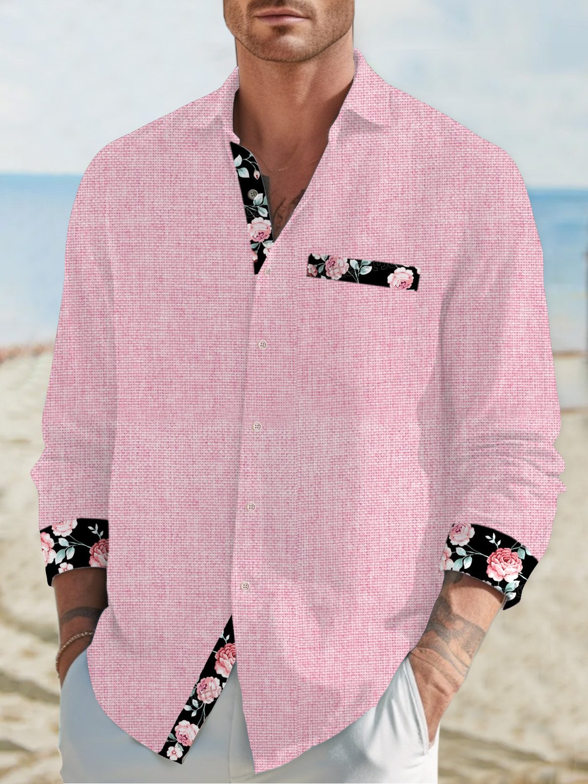 Camisa de manga larga con bolsillos y botones para hombre con estampado floral Alohadaddy
