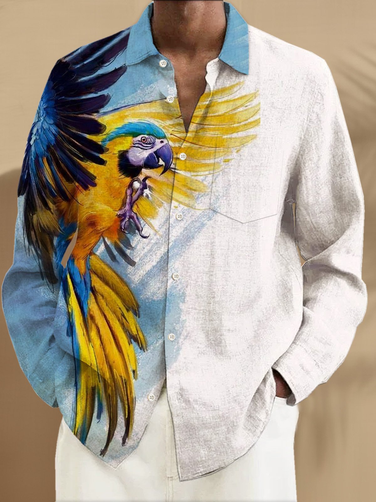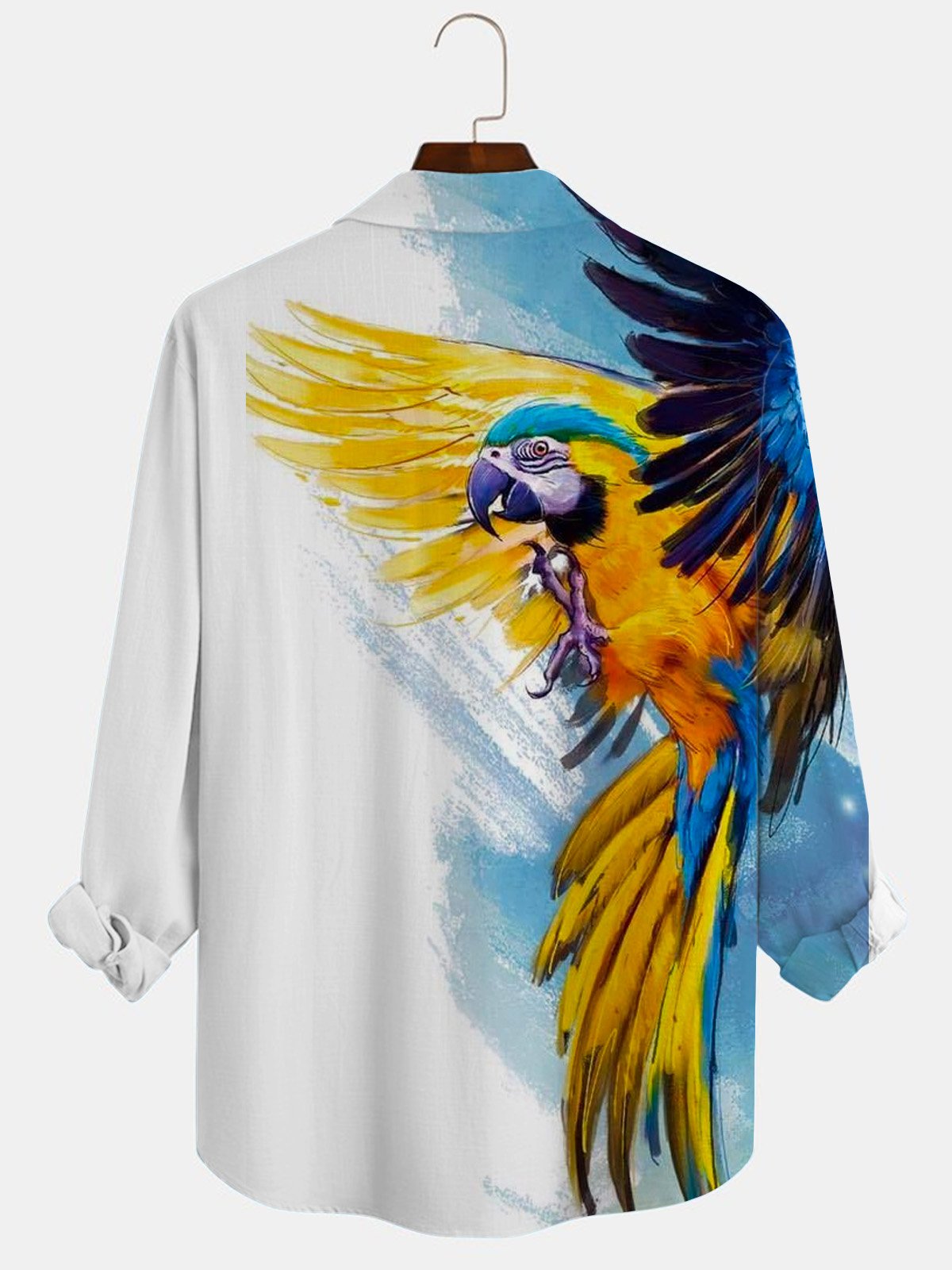 Camisa de manga larga con bolsillos abotonados para hombre con estampado de loros de Alohadaddy