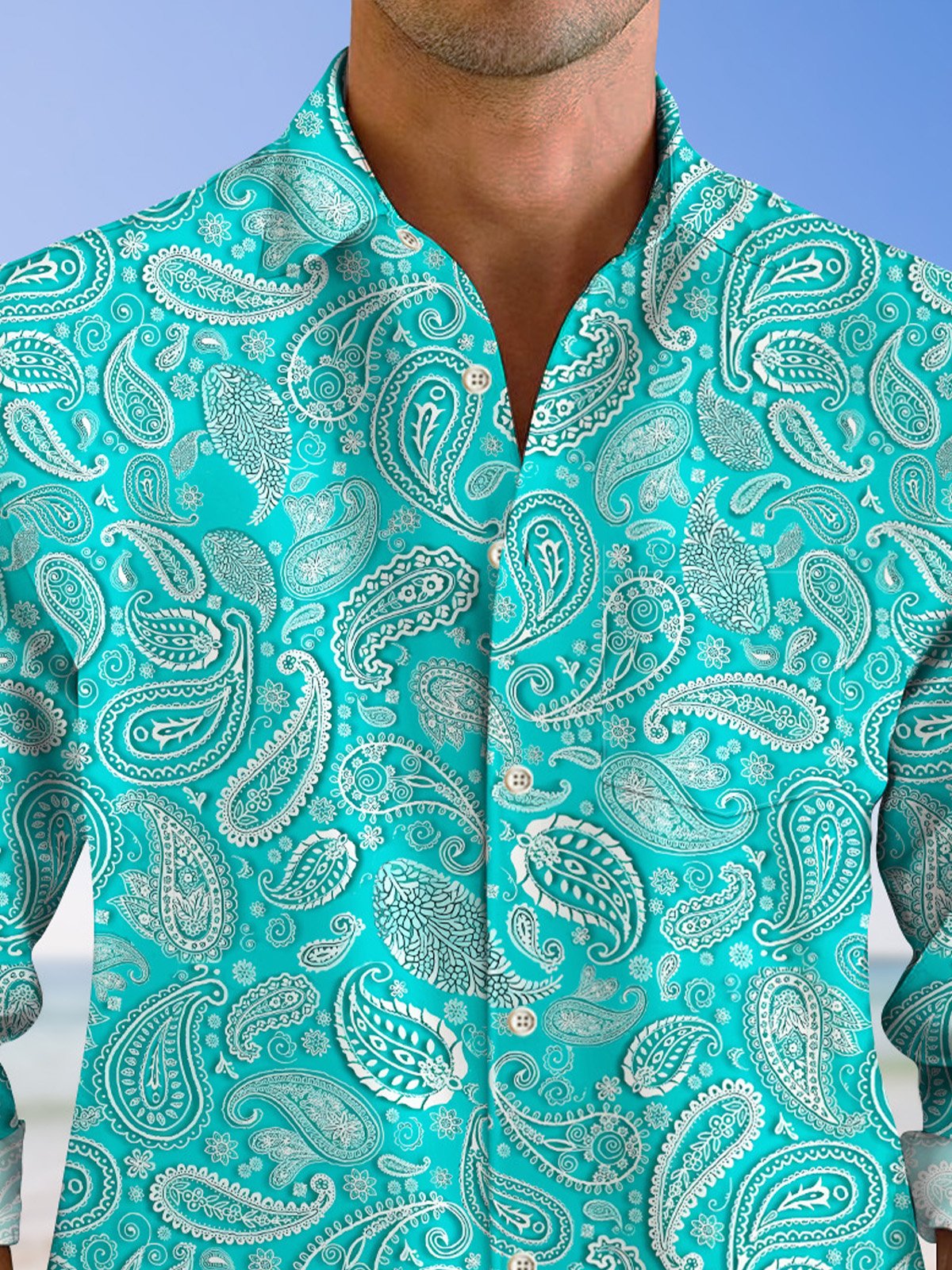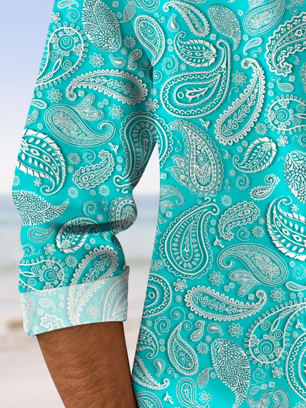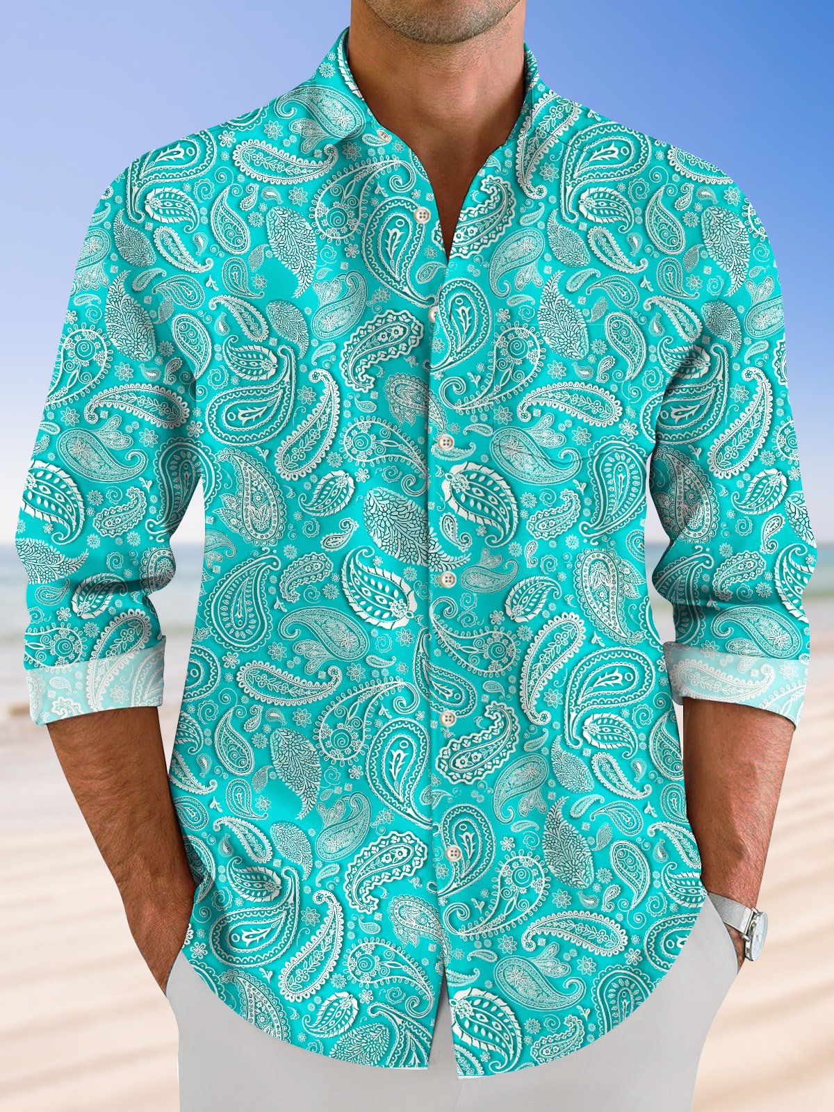 Camisa informal de manga larga con bolsillos y botones y diseño de flores de anacardo de Alohadaddy