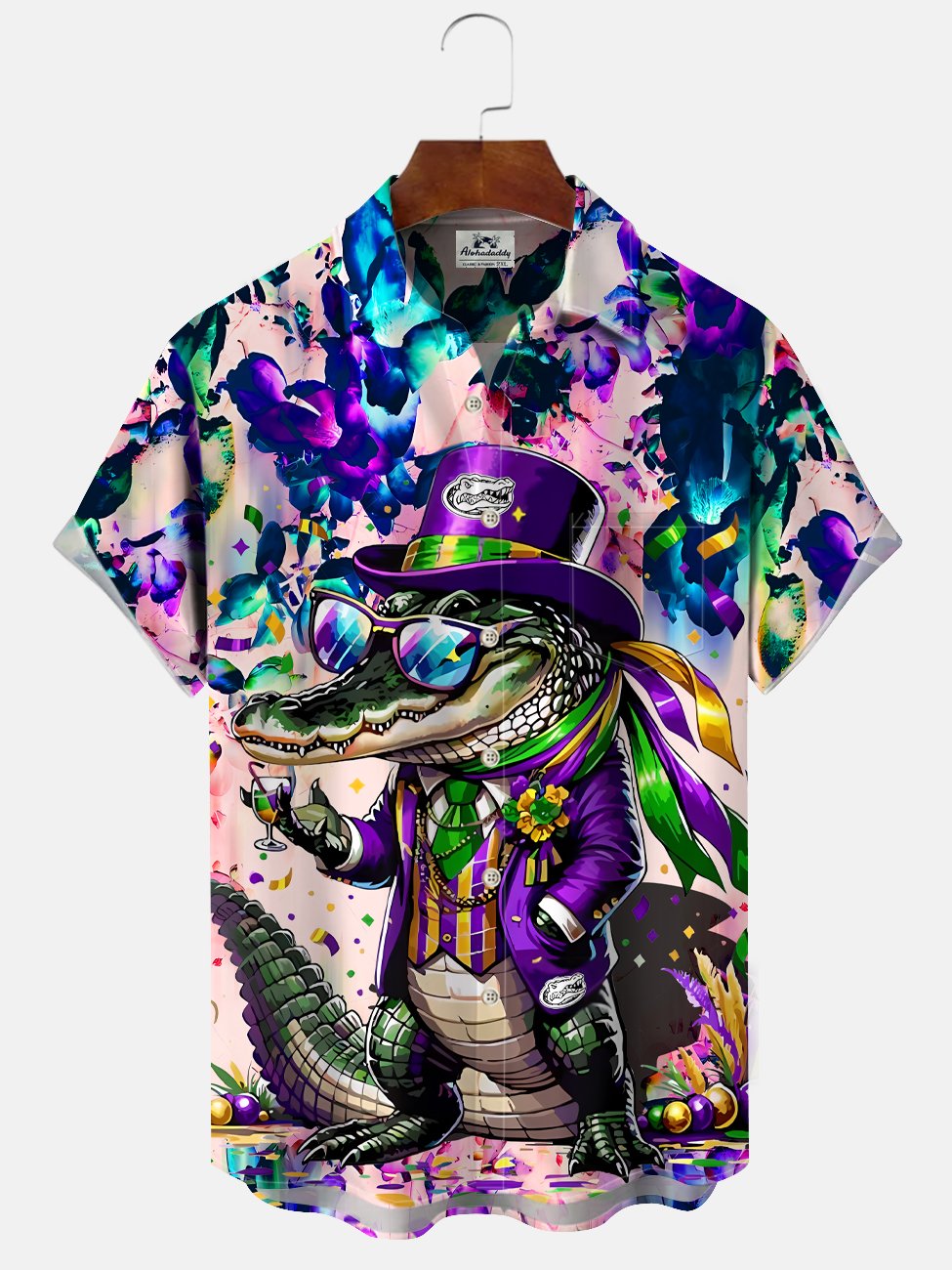 Alohadaddy Carnival Alligator Mask Button Pocket Casual Short Sleeve Shirt