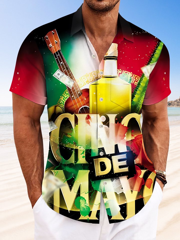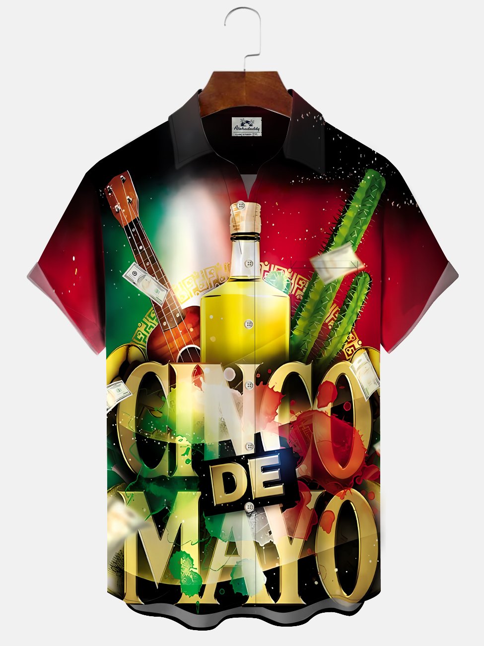 Alohadaddy Carnival Champagne Button Pocket Casual Short Sleeve Shirt