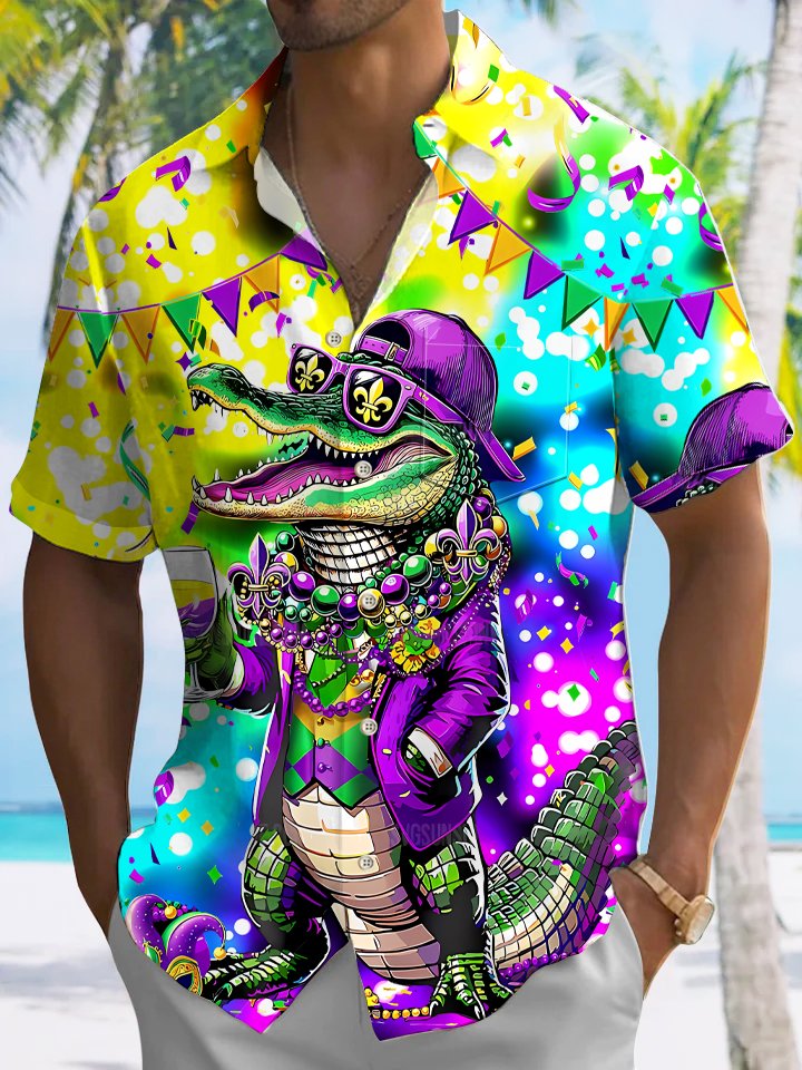 Alohadaddy Carnival Croc Button Pocket Casual Short Sleeve Shirt