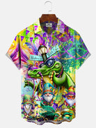 Alohadaddy Carnival Mask Crocodile Button Pocket Casual Short Sleeve Shirt