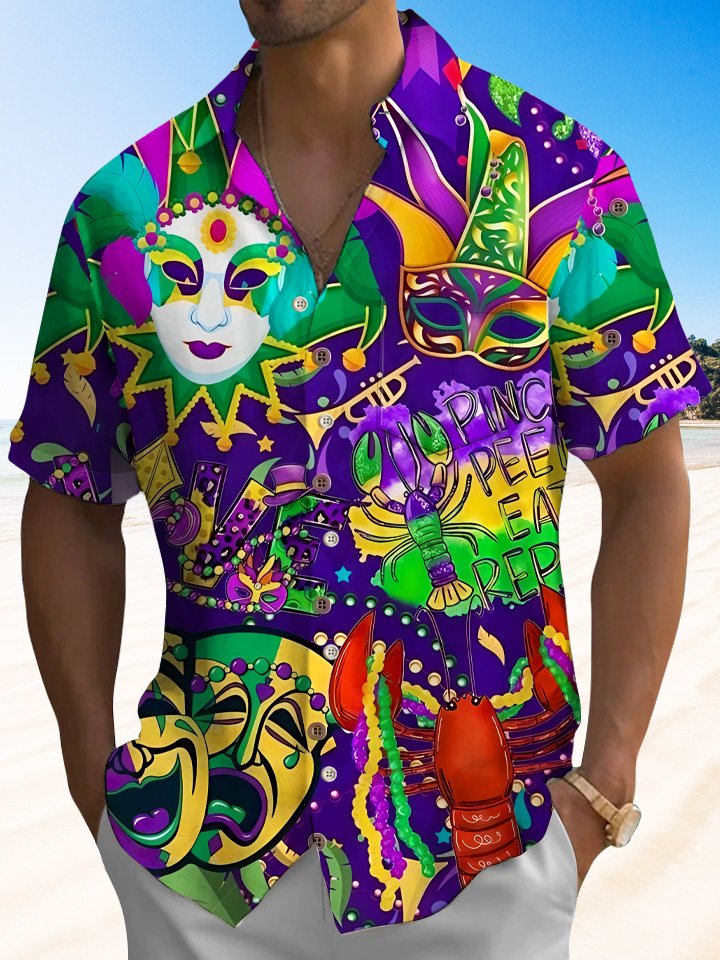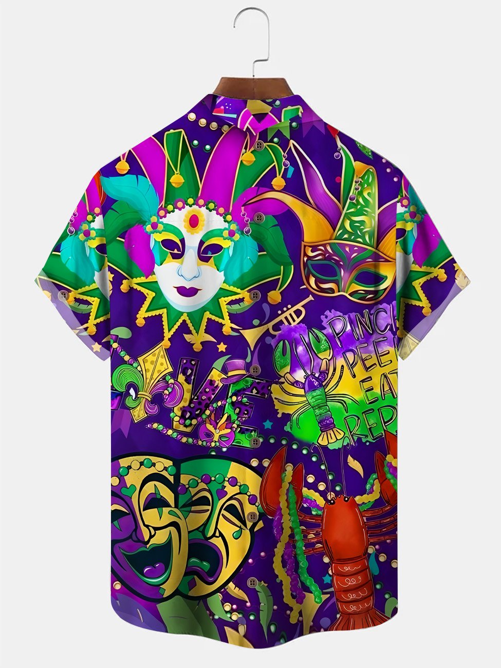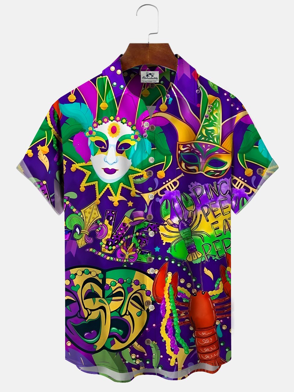 Alohadaddy Christmas Mask Button Pocket Casual Mens Polyester Shirt