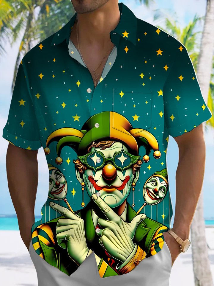 Alohadaddy Clown Carnival Button Pocket Casual Short Sleeve Shirt