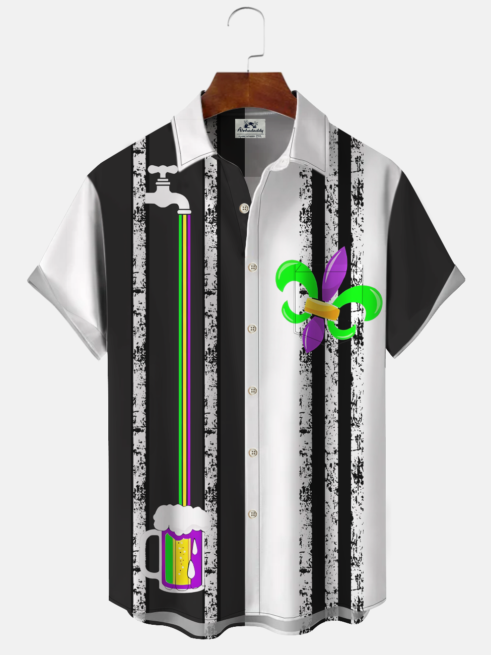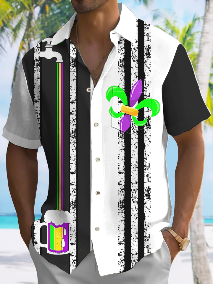 Alohadaddy Contrast Geometric Button Pocket Casual Short Sleeve Shirt