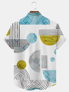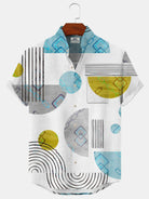 Alohadaddy Geometric Pattern Button Pocket Casual Short Sleeve Stand Collar Shirt