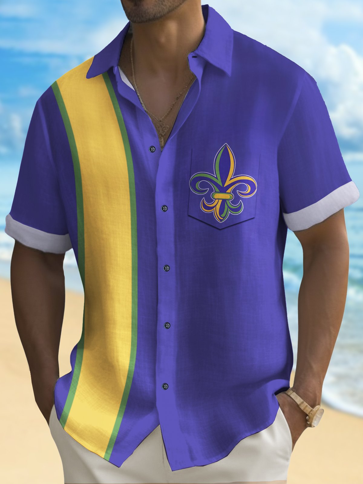Camisa de fiesta de talla grande con estampado de estructura de bolos en contraste de carnaval de Alohadaddy