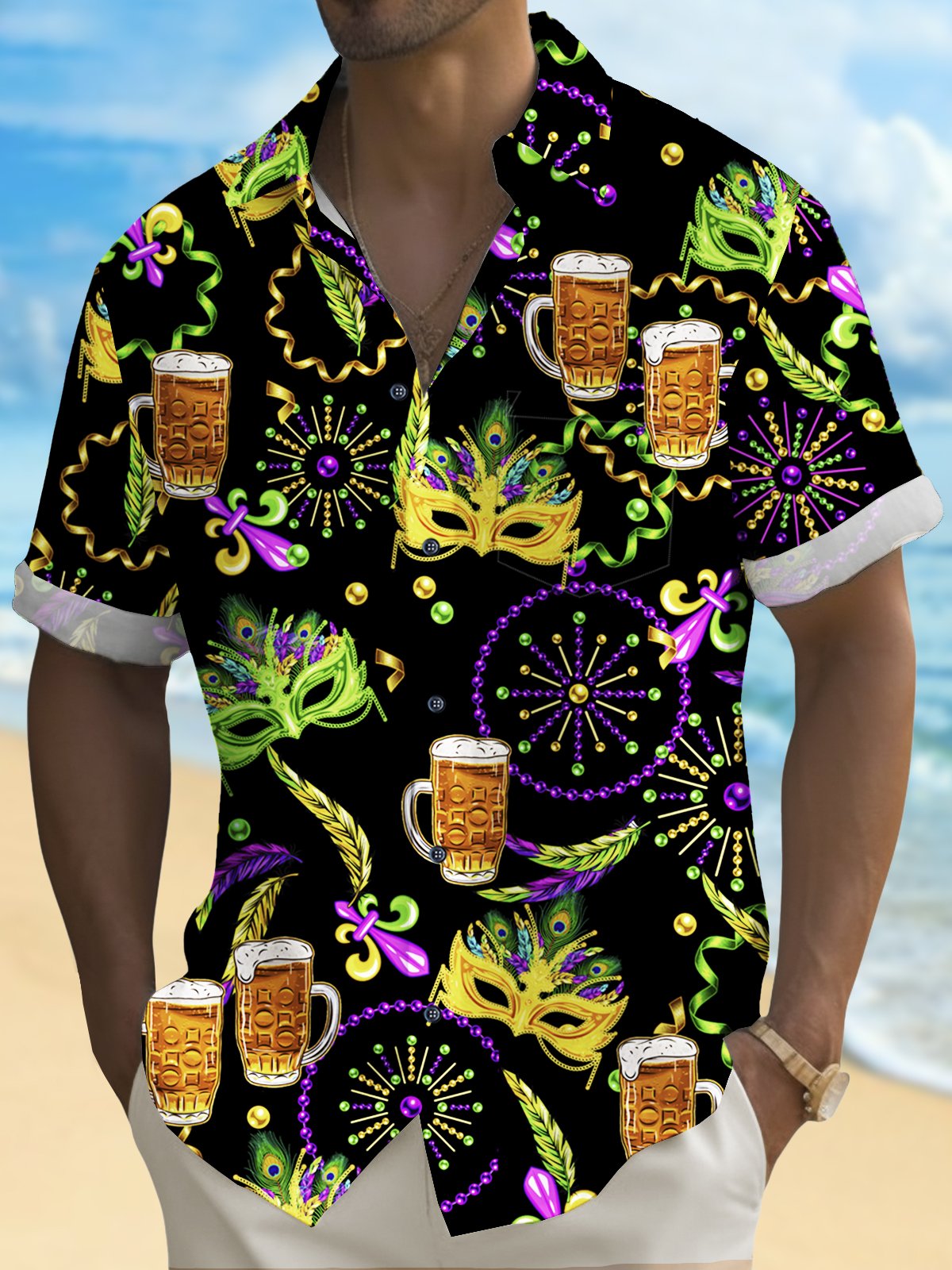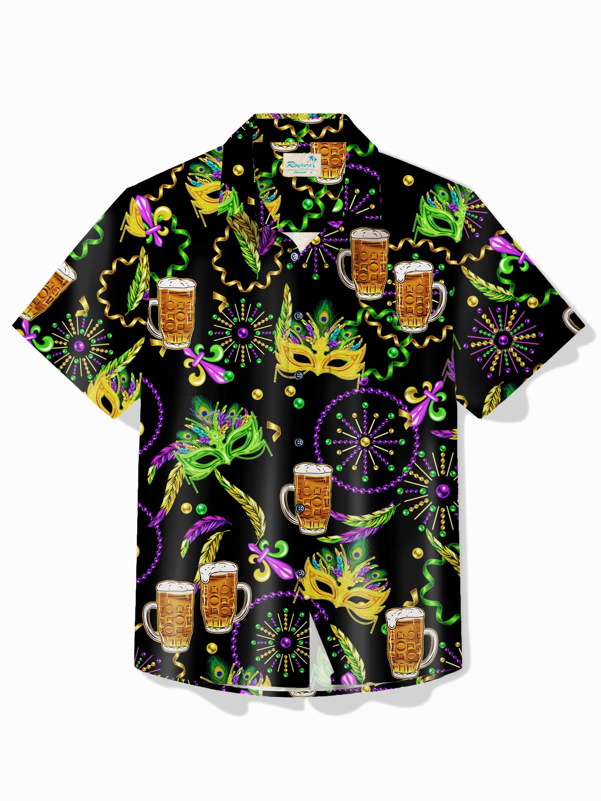 Camisa hawaiana elástica con estampado de copas de vino y máscara para hombre de Alohadaddy Holiday Mardi Gras, informal, de talla grande