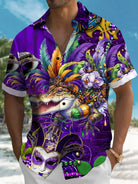 Alohadaddy Mardi Gras Crocodile Print Men's Chest Pocket Stretch Hawaiian Shirt