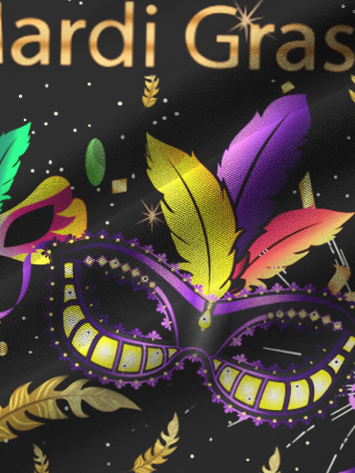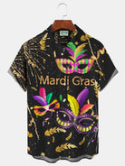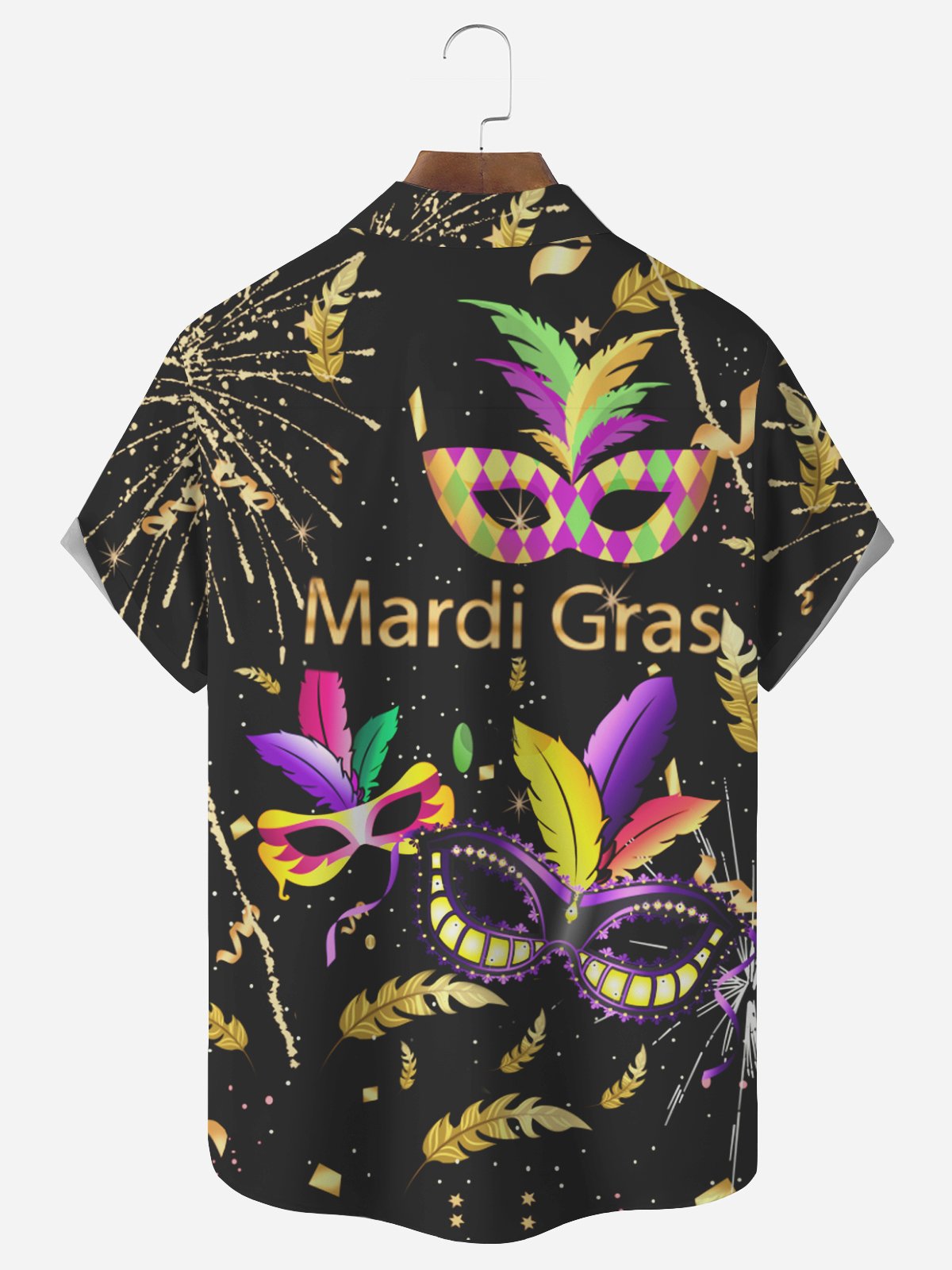 Camisa con bolsillo abotonado para hombre Alohadaddy Mardi Gras con estampado de cuentas y máscara de Mardi Gras de Aloha Hawaii