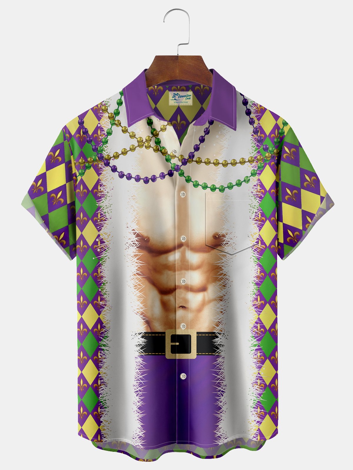 Camisa de manga corta con bolsillo abotonado para hombre con estampado Mardi Gras de Alohadaddy