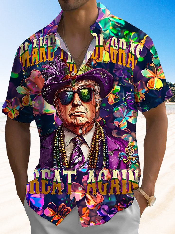 Alohadaddy Mardi Gras Trump Button Pocket Casual Short Sleeve Shirt